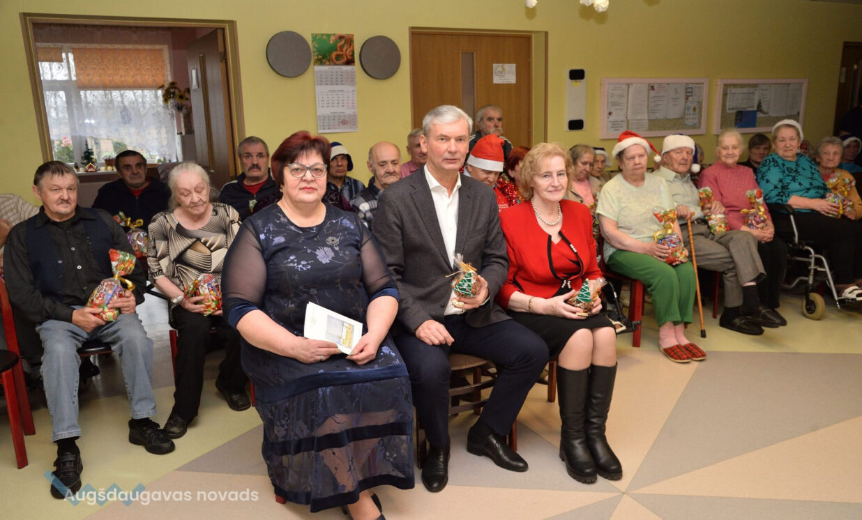 Ziemassvētku sagaidīšana ir cerību laiks, kad gan mazie, gan lielie tic un gaida brīnumus, kad sirdis un dvēseles ilgojas pēc siltuma, miera un kopā būšanas. Jau par tradīciju kļuvis, ka šajā laikā Augšdaugavas novada pašvaldības domes vadība un Sociālā dienesta vadība apmeklē visus sociālās aprūpes centrus, kuri atrodas novada teritorijā, un tajos notiek Ziemassvētku pasākumi. Klienti ilgi gaida šo notikumu un gatavojas, jo zina, ka tie būs ar prieku piepildīti brīži. 19.decembrī Augšdaugavas novada pašvaldības domes priekšsēdētājs Vitālijs Aizbalts un Augšdaugavas novada Sociālā dienesta vadītāja Anna Jegorova viesojās Valsts sociālās aprūpes centra „Latgale” filiālēs „Kalkūni” un “Kalupe”, Višķu sociālās aprūpes centrā un dienas centrā un sociālo pakalpojumu centrā “Pīlādzis”, lai sirsnīgi sveiktu iemītniekus un darbiniekus ar Ziemassvētkiem un Jauno gadu. Valsts sociālās aprūpes centra „Latgale” filiālē „Kalkūni” dzīvo 168 klienti, no tiem 10 Ukrainas civiliedzīvotāji, savukārt filiāli “Kalupe” par savu māju sauc 187 klienti. Višķu sociālās aprūpes centrā dzīvo 74 klienti, bet sociālo pakalpojumu centrā “Pīlādzis” – 70. Katrs no viņiem saņēma saldu dāvanu no pašvaldības.