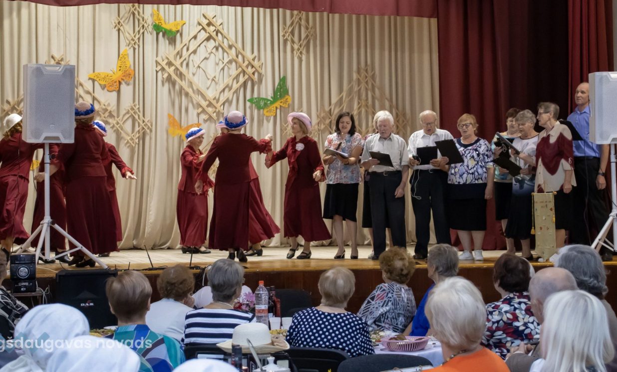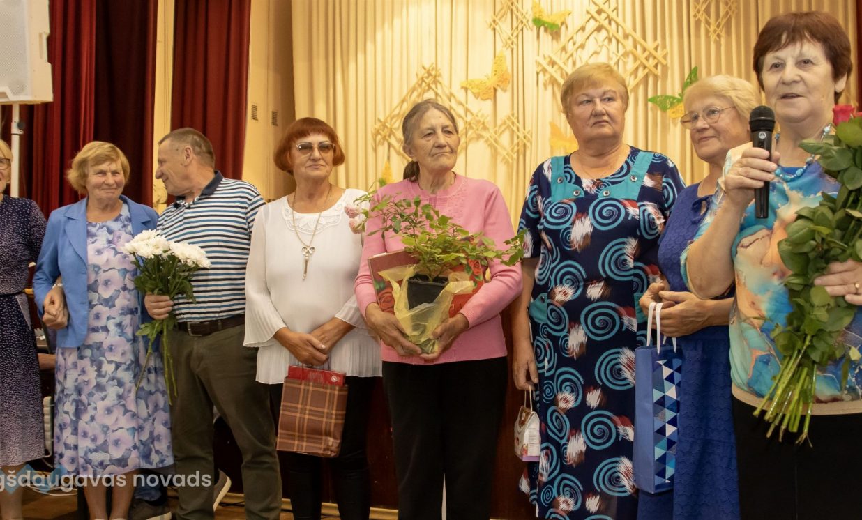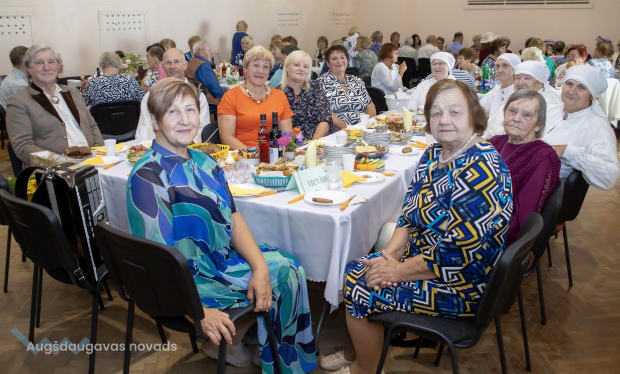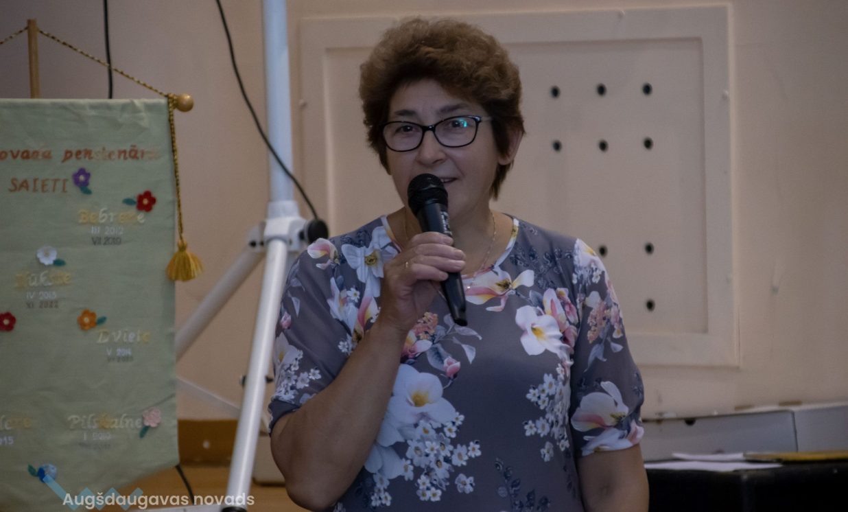 Augšdaugavas novada izpilddirektora 1. vietniece Ināra Natarova sveica seniorus: “Man ir liels prieks, ka visi šeit esat sanākuši un esat ļoti priecīgi! Jūs laikam esat tā novada iedzīvotāju daļa, kas ir pieredzes bagātākā, smaidošākā, aktīvākā, atsaucīgākā. Jūs esat arī tie, kas vairāk pakritizē pašvaldību. Bet kā var darīt darbu, ja neviens neko nesaka, tikai glauda pa galvu? Vajag arī tos akmentiņus ceļā, lai varētu atsperties! Tāpēc paldies, ka jūs mums esat, ka mēs varam balstīties jūsu pieredzē, pieņemt vairāk pārdomātākus lēmumus! Lai jums visiem laba veselība un izdevies šīs dienas pasākums!”