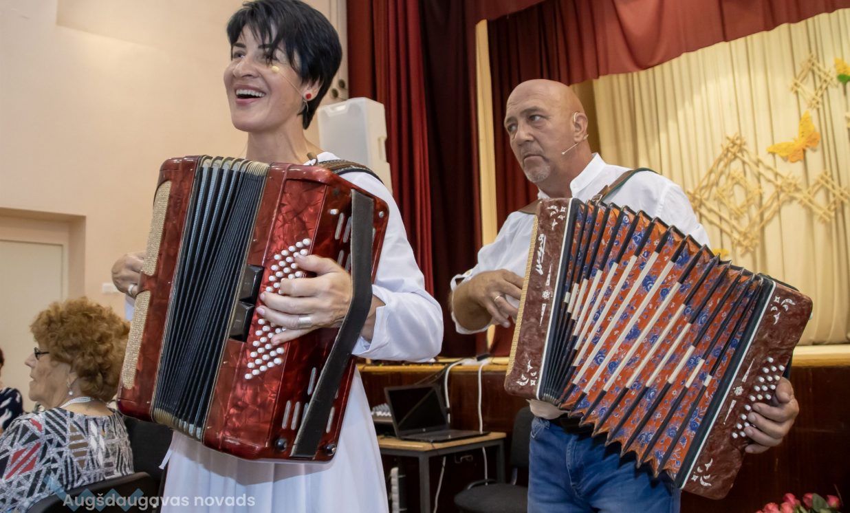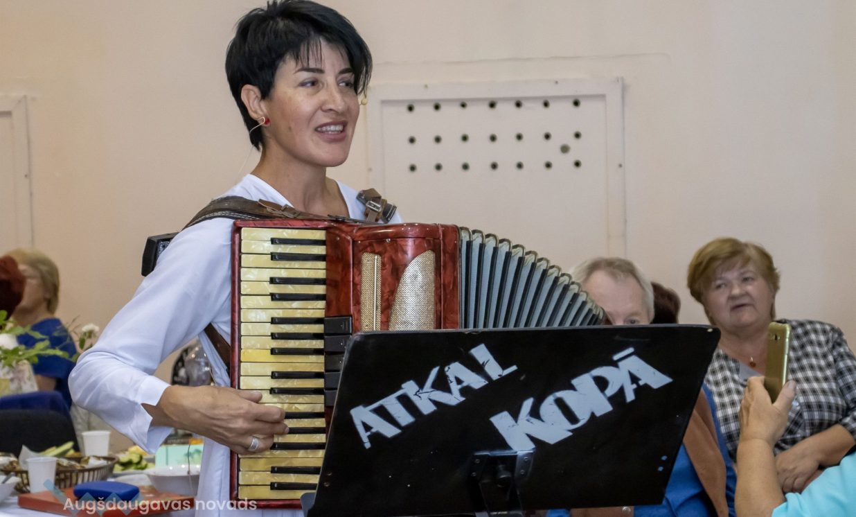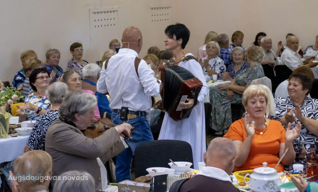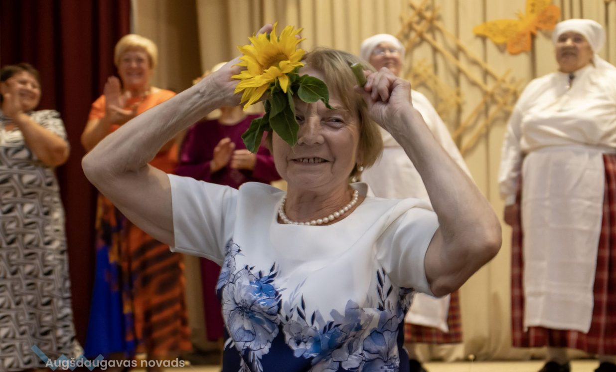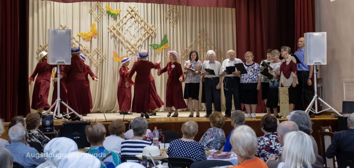 Augšdaugavas novada izpilddirektora 1. vietniece Ināra Natarova sveica seniorus: “Man ir liels prieks, ka visi šeit esat sanākuši un esat ļoti priecīgi! Jūs laikam esat tā novada iedzīvotāju daļa, kas ir pieredzes bagātākā, smaidošākā, aktīvākā, atsaucīgākā. Jūs esat arī tie, kas vairāk pakritizē pašvaldību. Bet kā var darīt darbu, ja neviens neko nesaka, tikai glauda pa galvu? Vajag arī tos akmentiņus ceļā, lai varētu atsperties! Tāpēc paldies, ka jūs mums esat, ka mēs varam balstīties jūsu pieredzē, pieņemt vairāk pārdomātākus lēmumus! Lai jums visiem laba veselība un izdevies šīs dienas pasākums!”