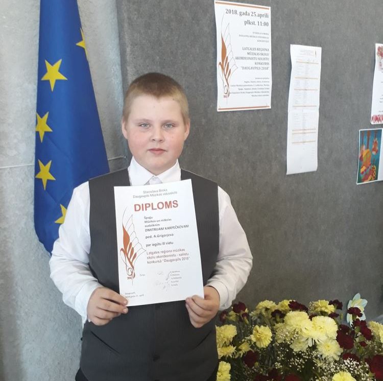 Latgales reģiona akordeonistu konkursā „Daugavpils 2018” mūsu skolas audzēkņi savās klašu grupās izcīnīja: Dmitrijs Karpečkovs (skolotāja Anna Grigorjeva), Matīss Sarkanis un Anastasija Svirska (skolotāja Svetlana Vasiļjeva) – Diplomus par iegūto 3. vietu, bet 2. klases audzēknis Rolands Kļavinskis (skolotāja Vija Petrova) – 1. vietu.