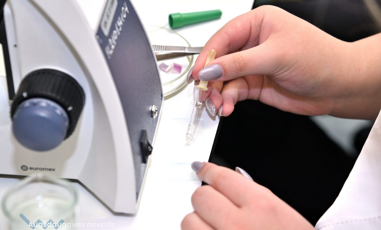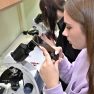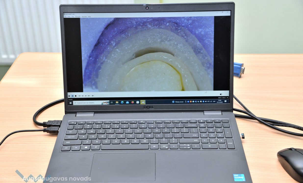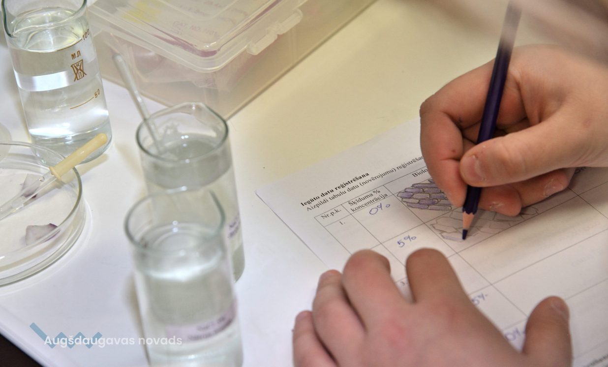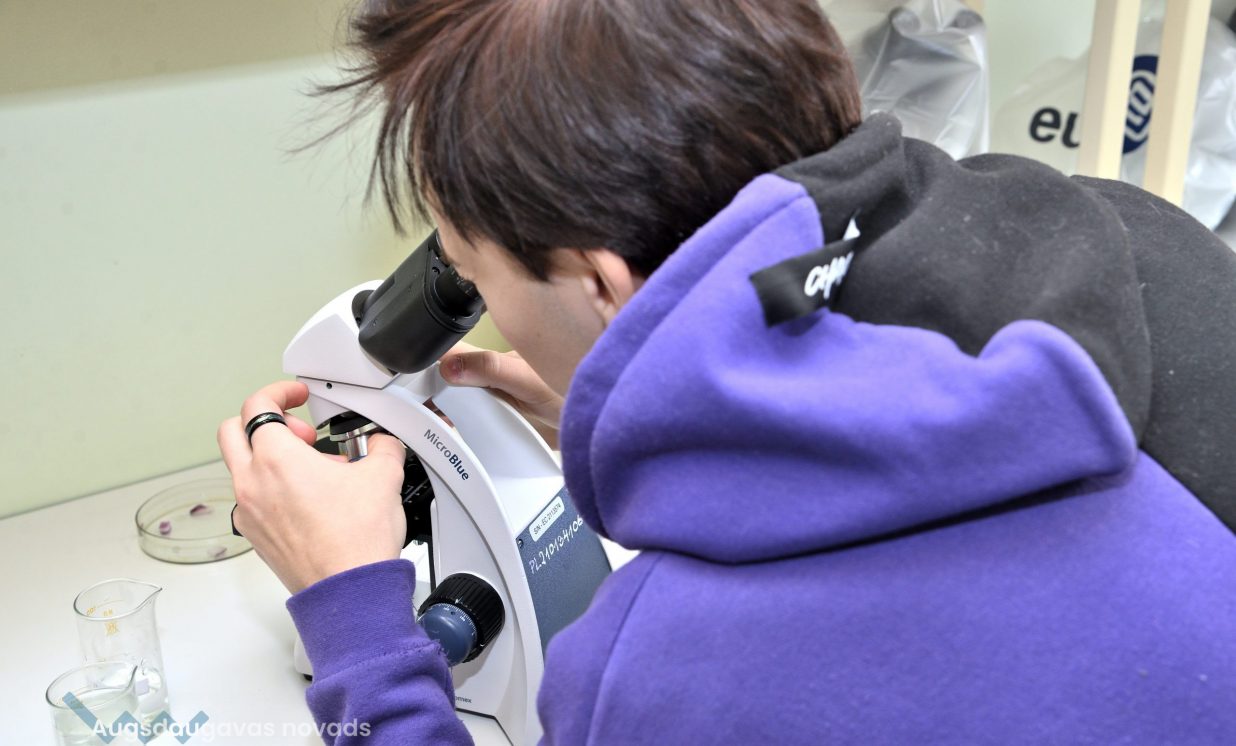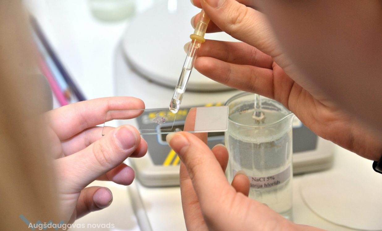 Arī bioloģija ir padziļināts priekšmets Špoģu vidusskolā, kas nozīmē, ka tas tiek apgūts daudz nopietnākā un sarežģītākā līmenī. Lai varētu īstenot šos mērķus, tika iegādāti mūsdienīgi gaismas mikroskopi. Šajos mikroskopos ir pieejamas dažādas jaunas funkcijas, tostarp pieci dažādi palielinājumi, kā arī ar diafragmu ir iespējams regulēt gaismas plūsmu. Skolēniem tas ļauj daudz nopietnāk sagatavoties turpmākajām studijām augstskolās. Kā skaidro bioloģijas skolotāja Anna Vasiļjeva, izmantojot pie tāfeles pieslēgto digitālo mikroskopu, kas objektu attēlo 3D formātā, ar izglītojamajiem iespējams apspriest ainu, kura redzama uz ekrāna.