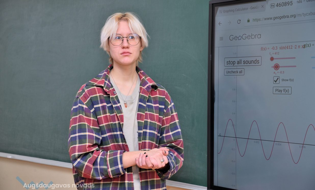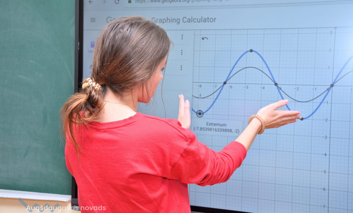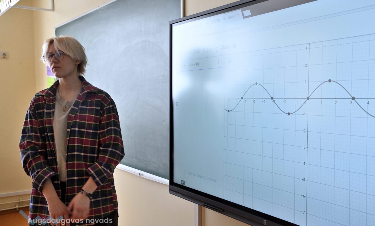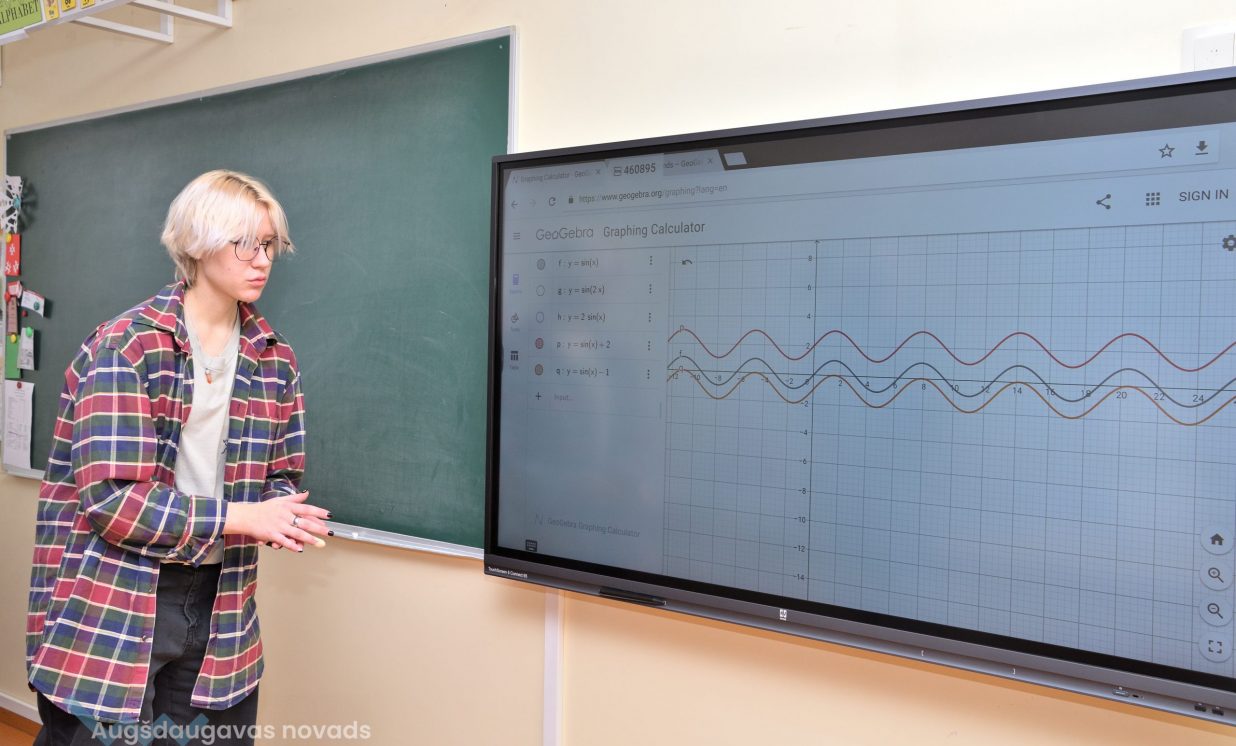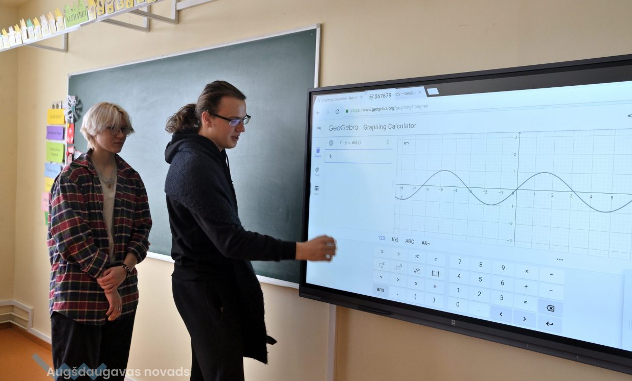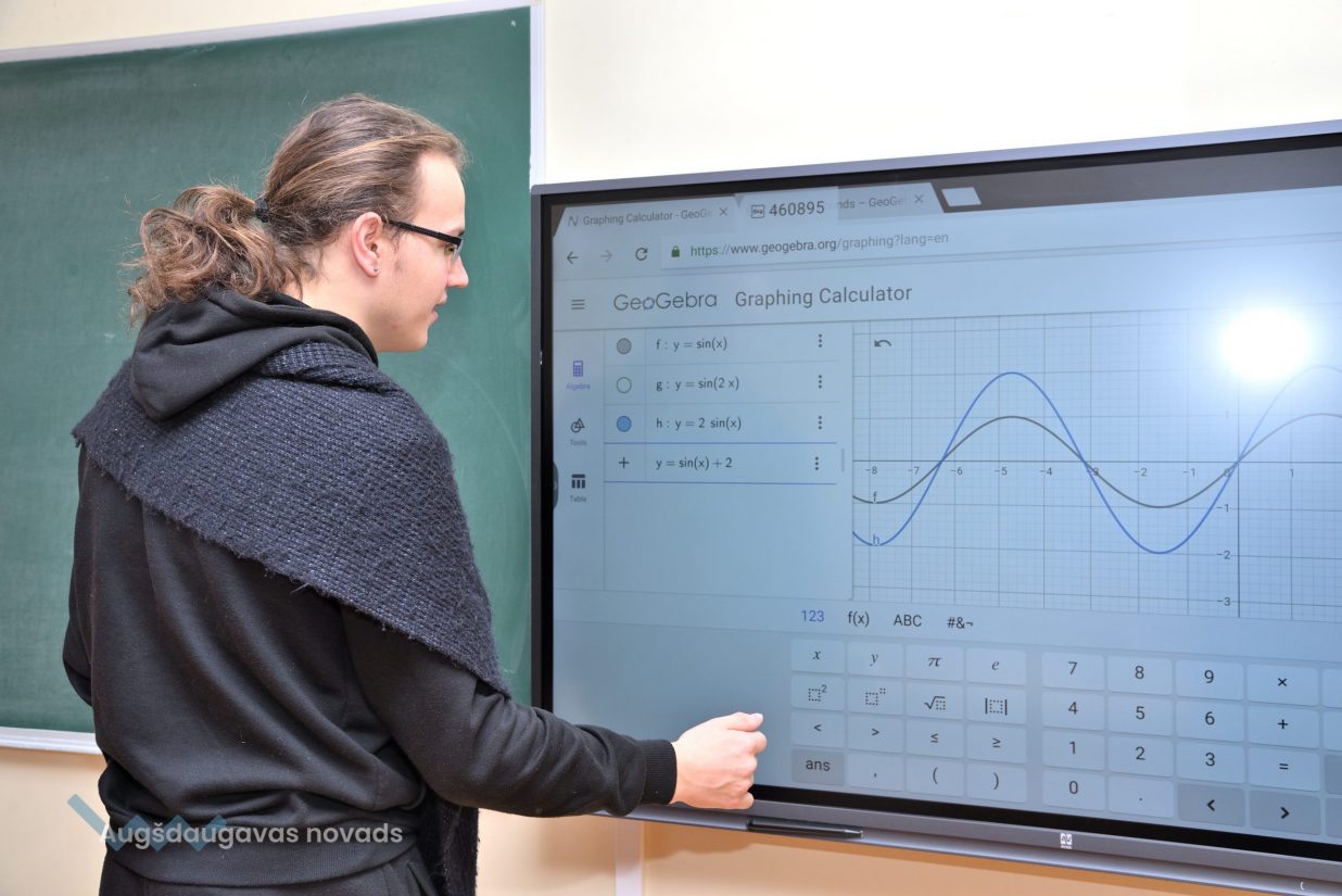 12. klases audzēknis Jānis: “Izmantojot interaktīvo tāfeli iespējams veikt uzdevumus ātri, ērti, turklāt procesu var redzēt uzreiz, vienā momentā. Nav nepieciešamības ilgi pavadīt laiku, konstruējot grafikus pašrocīgi. Digitālajā vidē var izmainīt mainīgos un uzreiz redzēt izmaiņas, kas ekonomē laiku.” Interaktīvajā vidē iespējams veidot arī nepieciešamās tabulas, kā arī izvēlēties jebkādus matemātiskos uzdevumus, tikai digitālajā vidē. Arī matemātikā ir pieejamas dažādas interneta vietnes, ar kuru palīdzību iespējams atrast dažādus uzdevumus. Kā plusu, skolnieki atzīmē arī faktu, ka liela daļa uzdevumu ir angļu valodā, kas noteikti palīdz apgūt šo valodu. “Apgūt vielu kļuva interesantāk, un uz interaktīvās tāfeles vieglāk var saprast, kā tas viss strādā,” rezumē Jānis.