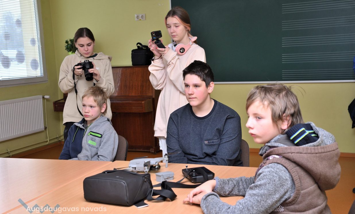 Projekta ietvaros tika iegādāts arī drons un kamera. Jaunieši interešu izglītības pulciņa “Novadpētniecība” ietvaros iemācījušies ar to lidot un filmēt. Pēc kadru uzņemšanas, izglītojamie veido kartes. Drons ļauj pētīt arhitektūru, kultūrvēsturiskos objektus un ielas. Vēlāk jaunieši nodarbojas ar uzņemtajiem materiāliem, izmantojot diezgan sarežģītas video apstrādes programmas. Fotogrāfijas un dokumentēšanas pulciņā jaunieši aktīvi izmanto kameru, lai atspoguļotu skolas dzīvi. Turpina direktores vietnieks izglītības jomā un vēstures skolotājs Jānis Briška: “Viss, kas tiek iegādāts, vienmēr tiekiegādāts pēc izvērtējuma par to, kas bērniem ir nepieciešams, kādas ir viņu intereses, un,