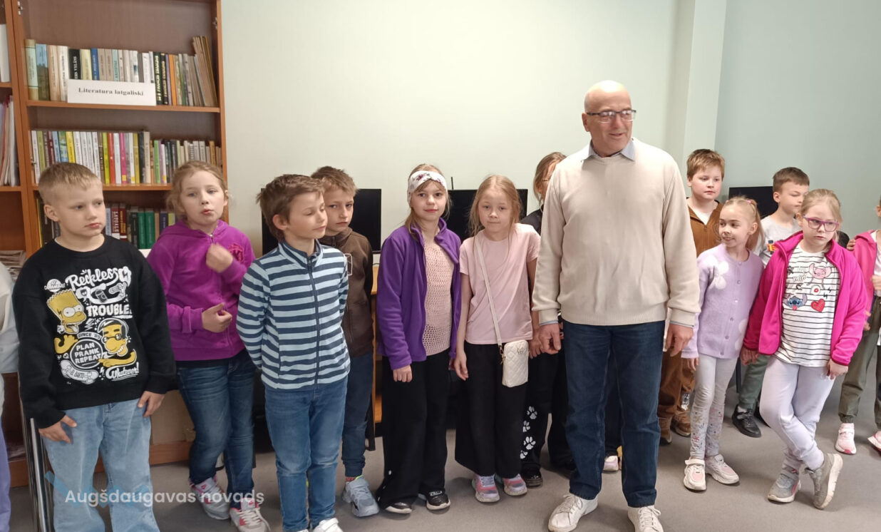 Skolēni devās uz Višķu pagasta bibliotēku, kur viņus laipni uzņēma bibliotēkas vadītājs Jānis Strods. Viņš iepazīstināja bērnus ar bibliotēkas iekārtojumu, ikdienas darbu, kā arī ar jaunāko pieejamo grāmatu klāstu. Īpašu aizrautību izraisīja stāstījums par novadpētniecību un mūsu kultūrvēsturiskā mantojuma saglabāšanu.