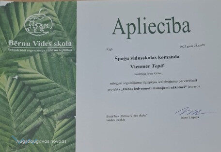 Projekts “Dabas iedvesmoti risinājumi nākotnei” tiek īstenots ar Latvijas vides aizsardzības fonda atbalstu. To organizē Bērnu Vides skola sadarbībā ar RTU Vides aizsardzības un siltuma sistēmu institūtu. Projekta norises laiks: no 2024. gada 1. marta līdz 2025. gada 30. jūnijam.