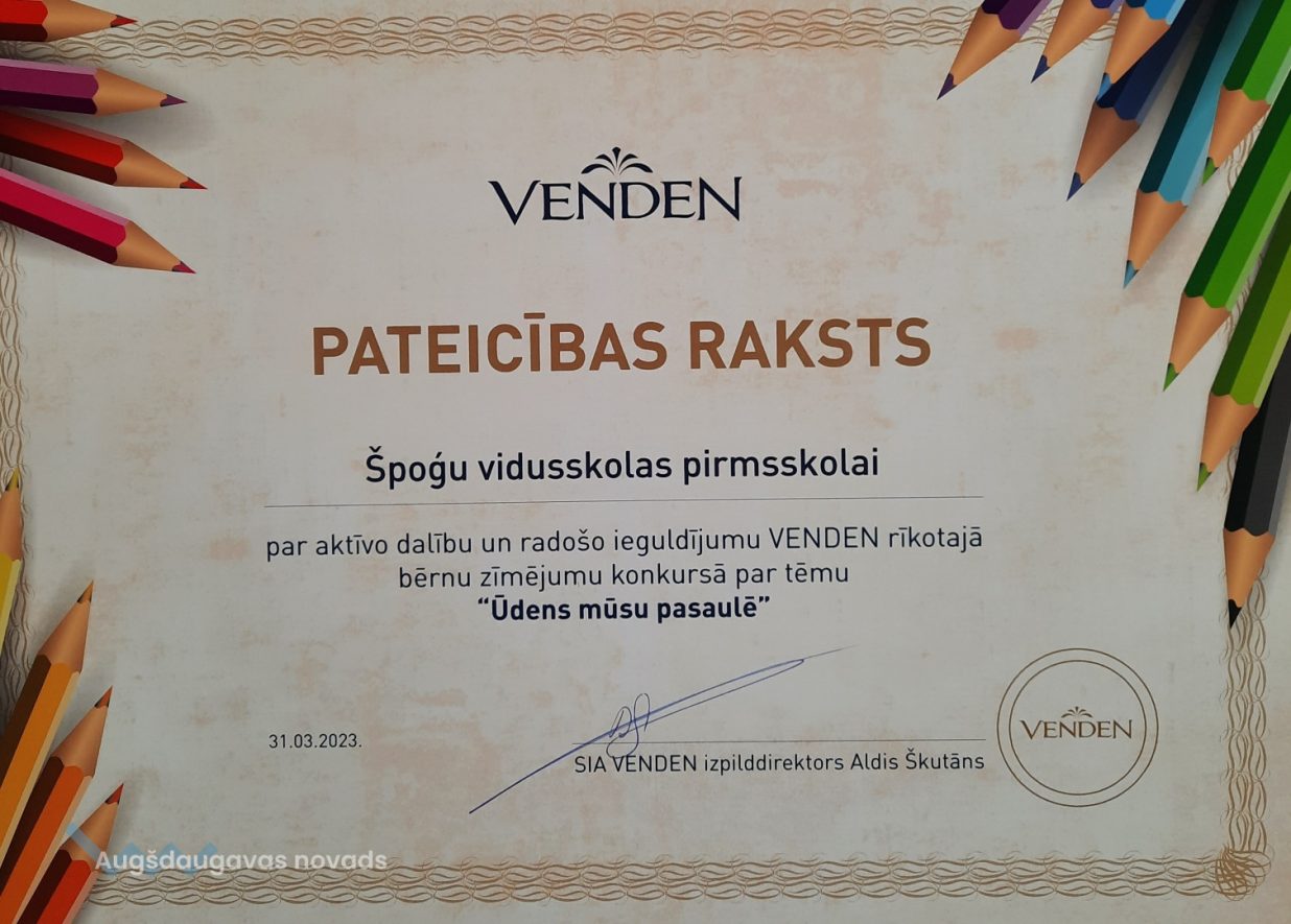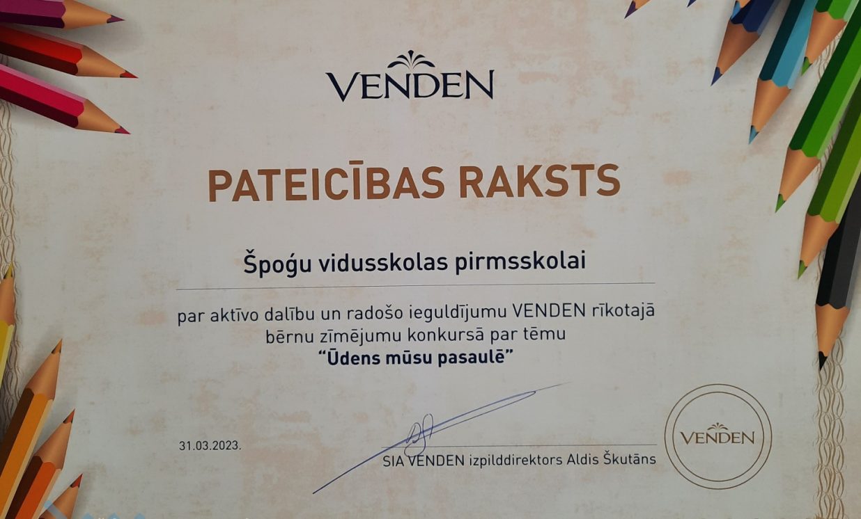 Špoģu vidusskolas pirmsskolas izglītojamie lepojas ar sasniegumiem zīmējumu konkursā “Ūdens mūsu pasaulē”