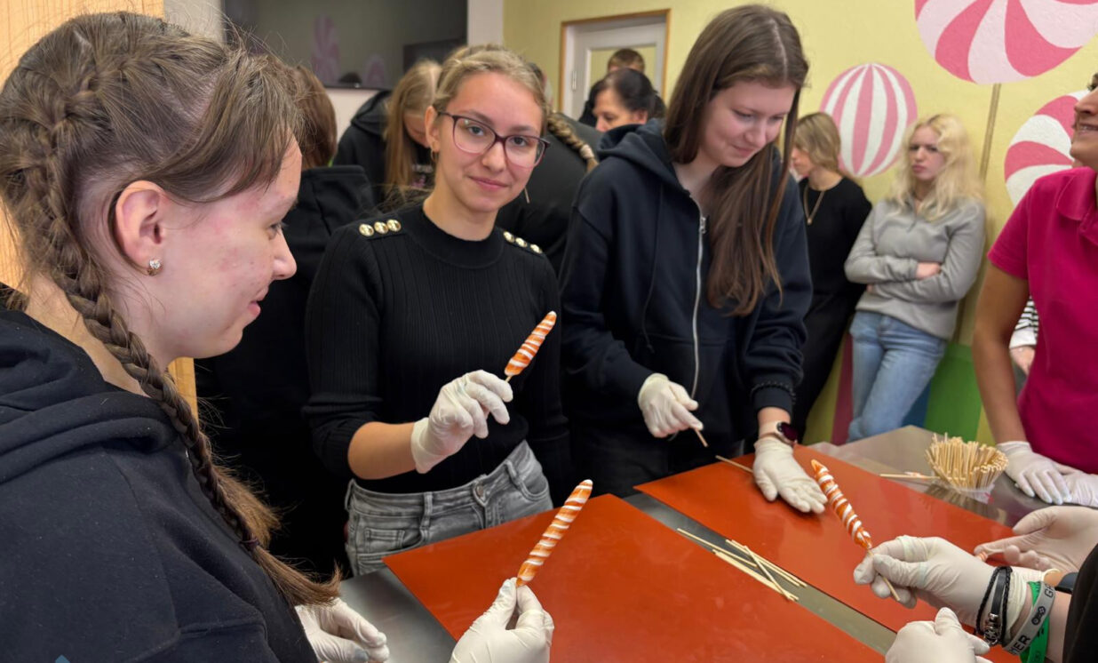 Dienas beigās skolēni devās uz karameļu darbnīcu, kur notika meistarklase. Katram bija iespēja pašam izliet savu karameli, izvēloties krāsu un garšu. Gaisā valdīja smaržīgs cukura un prieka aromāts, un skolēni ar aizrautību vēroja, kā karamele pārtop īstā mākslas darbā. Protams, neizpalika arī saldāko izstrādājumu degustācija.