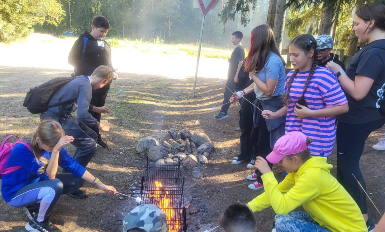 Noslēgumā, pie ugunskura valdīja silta un draudzīga atmosfēra – visi kopā cepa desiņas un dalījās ar nodarbības laikā gūtajiem iespaidiem, pārrunājot piedzīvoto un smeļoties jaunas atziņas.