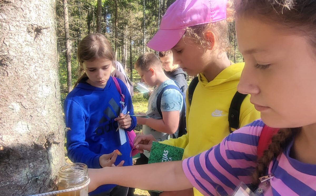 Špoģu vidusskolas skolēni atklāj dabas noslēpumus mežā