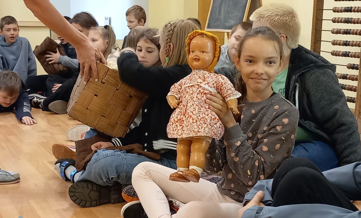 Savukārt 4. a klase piedalījās muzeja piedāvātajā Latgales tradīciju un kultūrvēsturiski balstītajā programmā “ Senās spēles un rotaļas.” Nodarbības laikā bērni uzzināja, kādas ir senās un pašu rokām gatavotās rotaļlietas, spēlēja izglītojošas, jautras rotaļas. Rotaļās viņi attīstīja veiklības, atjautības u.c. iemaņas, mācījās iecietīgi, draudzīgi izturēties pret apkārtējiem cilvēkiem. Programmā tika aktualizēta seno koka rotaļlietu, spēļu un rotaļu izmantošana, tā saglabājot un pārmantojot zināšanas par folkloru un tradīcijām. Ļoti labi šī programma papildināja skolā apgūtās tēmas par seno skolu.