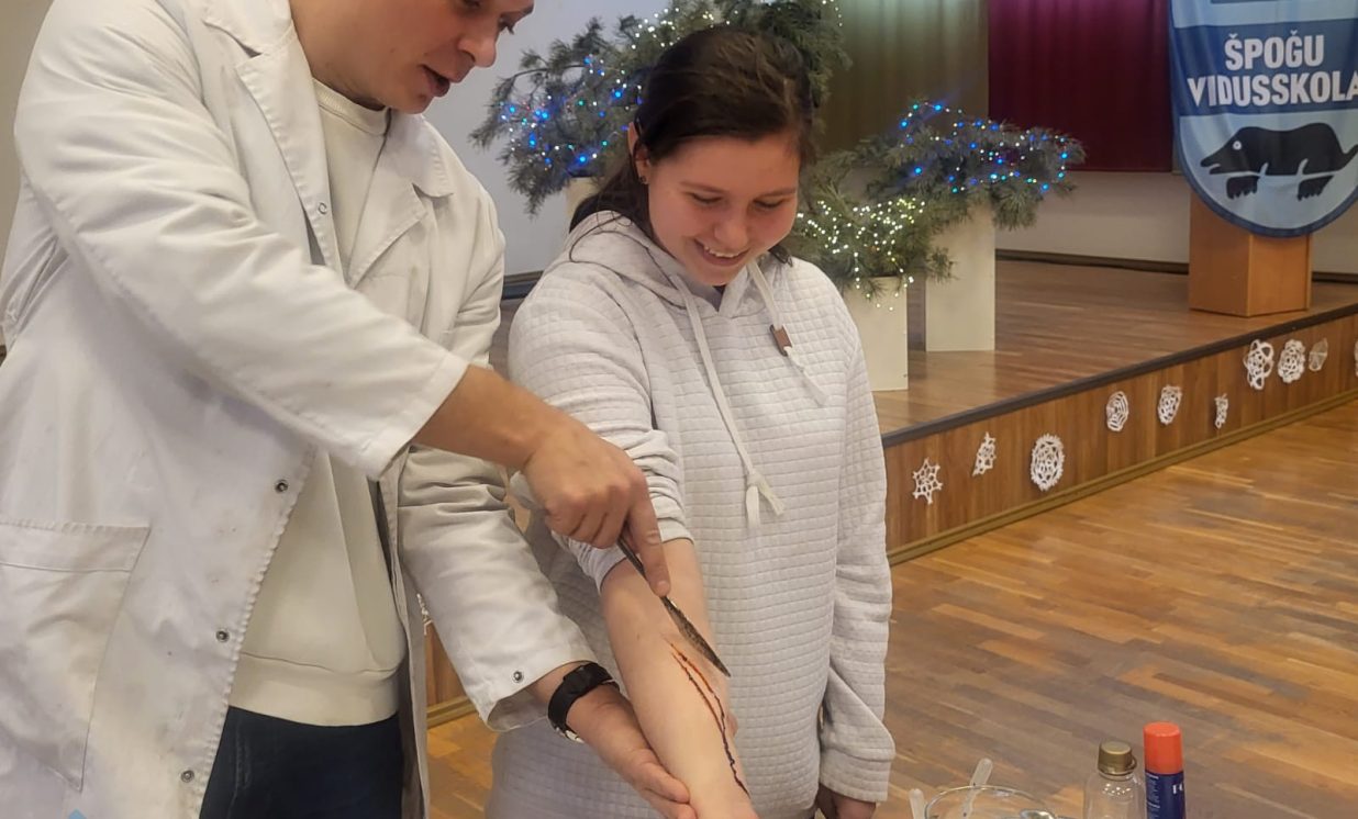 Špoģu vidusskolas skolēni piedalās nodarbībā “Zinātnes un mākslas krustpunkti”