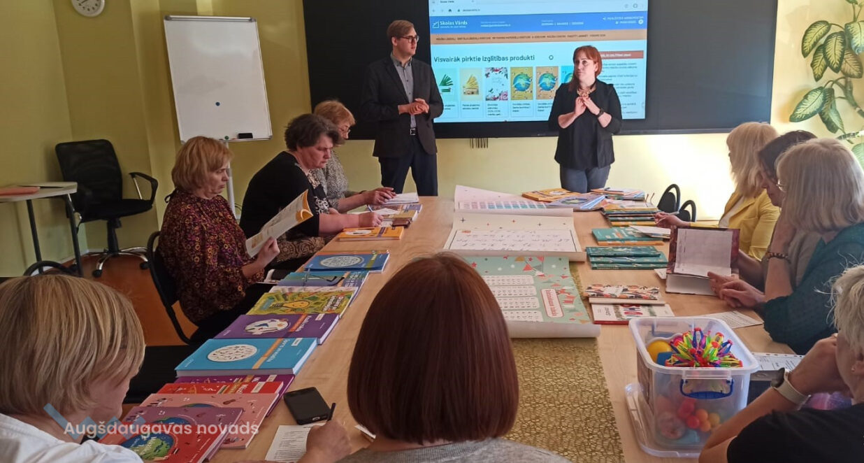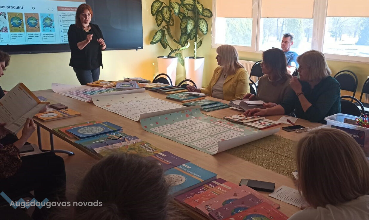 Izdevniecības pārstāvji skolas pedagogiem stāstīja, rādīja, atbildēja uz jautājumiem, demonstrēja plašo mācību līdzekļu un piederumu klāstu, kā arī aizrautīgi stāstīja par topošajiem projektiem.