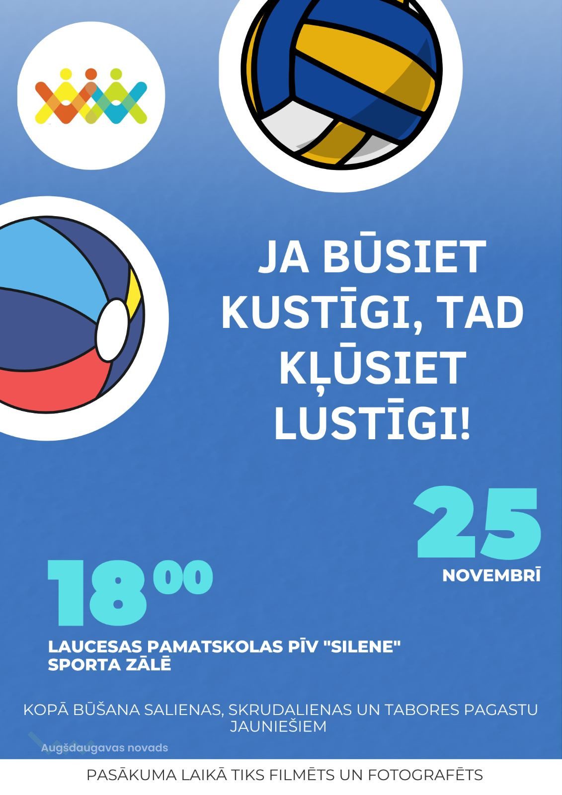 Ar mērķi popularizēt veselīgu dzīvesveidu un saliedēt jauniešus, 25. novembrī no plkst. 18:00 Lauceses pamatskolas PĪV "Silene" jauniešiem no Skrudalienas, Salienas, Tabores pagastiem tiks organizēts sporta pasākums "Ja būsiet kustīgi, tad kļūsiet lustīgi!". Jauniešiem būs iespēja interesanti un aktīvi, sportojot pavadīt savu vakaru lieliskā, draudzīgā kompānijā!