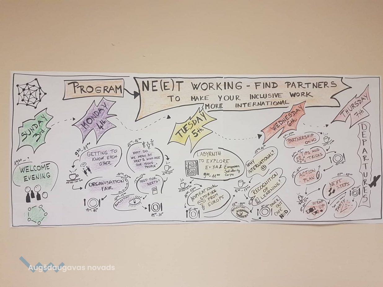 No 4. līdz 7.novembrim Daugavpils novada jaunatnes lietu speciāliste Olesja Ņikitina piedalījās starptautiskās apmācībās “"NE(E)T working - find partners to make your inclusive work more international" Prāgā, kurās piedalījās 7 valstis: Latvija, Itālija, Čehija, Anglija, Slovēnija, Vācija, Francija. Trīs dienu laikā dažādu organizāciju pārstāvji izstrādāja stratēģiju darbā ar NEET* jauniešiem. Dažādi teorētiski un praktiski uzdevumi deva iespēju sistematizēt un ieviest jaunus darba mehānismus darbā ar jauniešiem, liekot akcentu uz jauniešiem, kuri nav ieinteresēti mācīties, strādāt u.tt. Apzinot situāciju visās pārstāvētajās valstīs, tika secināts, ka darbs ar jaunatni ir attīstās un liela uzmanība ir pievērsta tieši NEET jauniešiem.