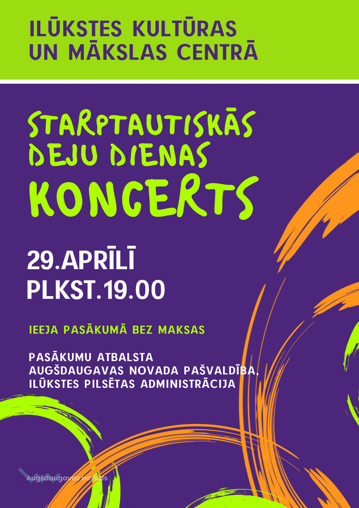 29. aprīlī plkst. 19.00 Ilūkstes Kultūras un mākslas centrā (Brīvības iela 12, Ilūkste) notiks Starptautiskās deju dienas koncerts.