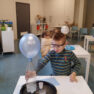 Pirmajā eksperimentā skolēni izmantoja sodu, etiķi un gaisa balonu. Sajaucot sodu ar etiķi, notika ķīmiska reakcija, kuras rezultātā izdalījās gāze, kas piepūta balonu. Bērni ar aizrautību vēroja, kā balons pats no sevis pieaug arvien lielāks.