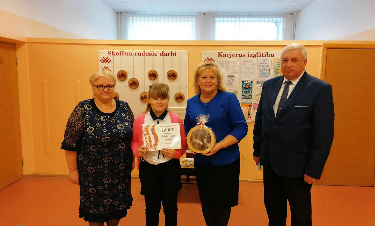 - Randenes pamatskolas 8. klases skolniecei Darjai Adahovskai.