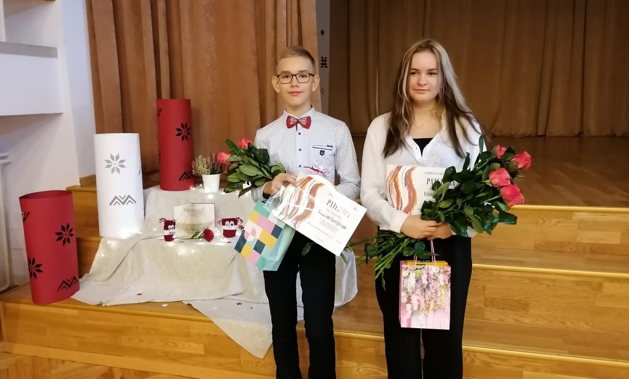 - Sventes vidusskolas 7. klases skolniekam Oskaram Saveļjevam un 12. klases skolniecei Viktorijai Ivanovai;