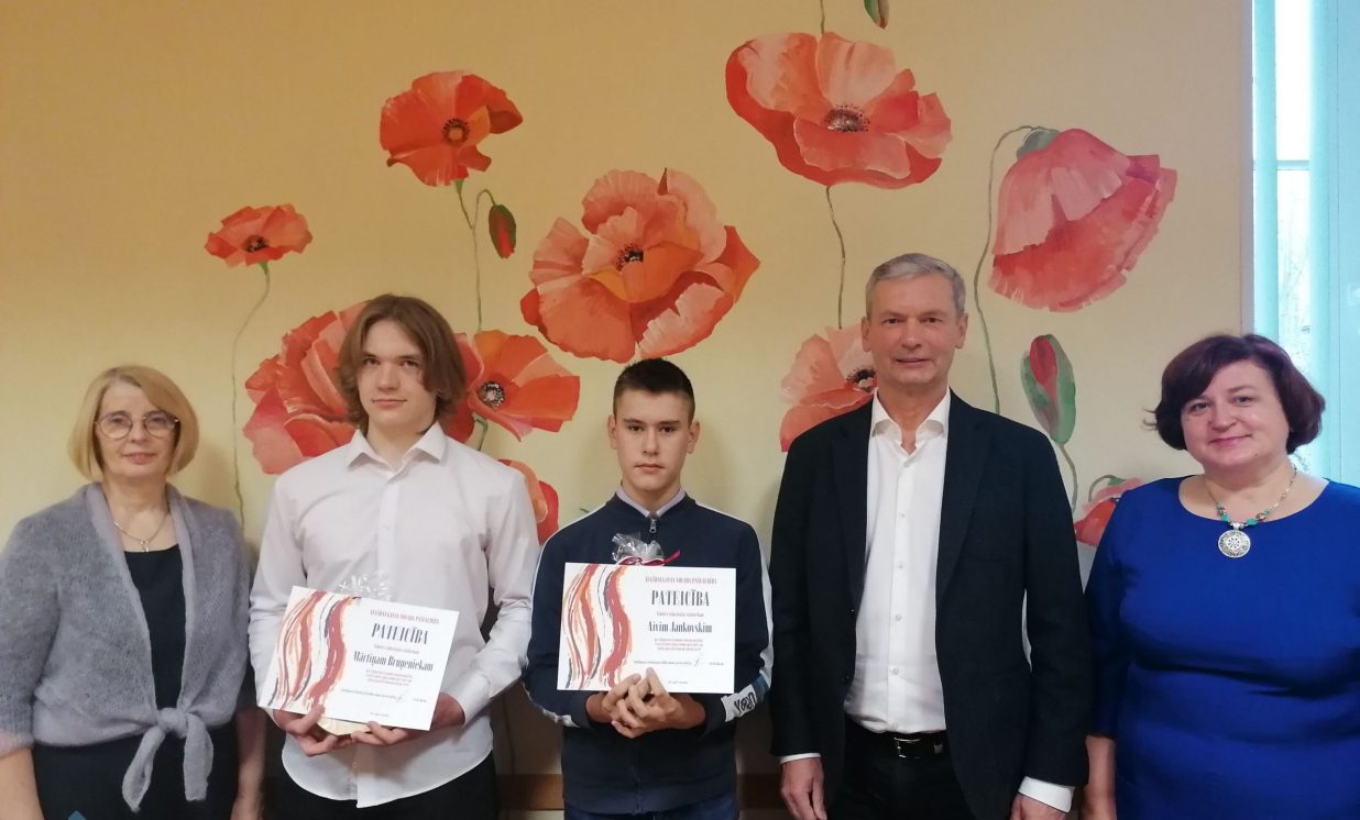 - Vaboles vidusskolas 9. klases skolniekam Aivim Jankovskim un 12. klases skolniekam Mārtiņam Bruņeniekam;