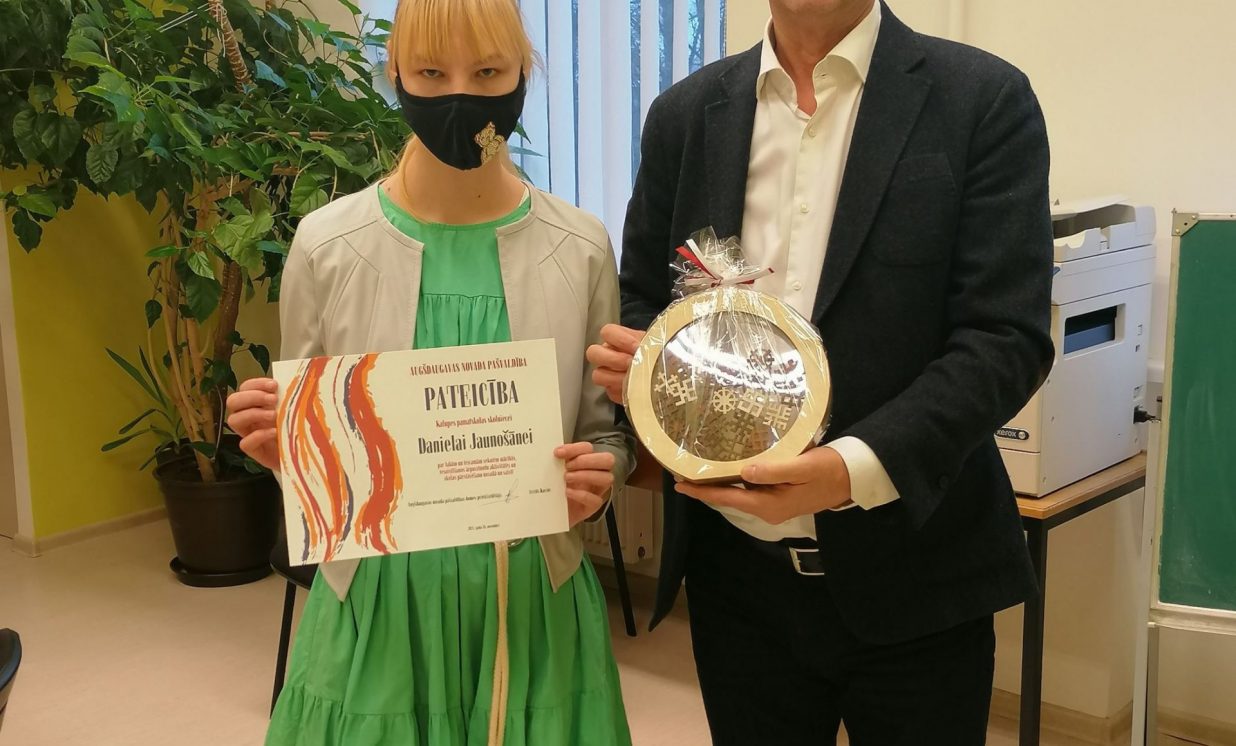- Kalupes pamatskolas 9. klases skolniecei Danielai Jaunošānei;