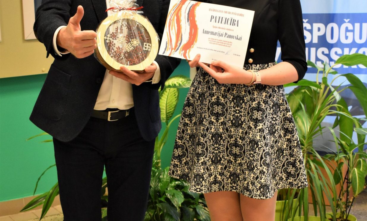 - Špoģu vidusskolas 9. klases skolniecei Annemarijai Panovskai un 12. klases skolniecei Elānai Gavrilovai;
