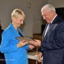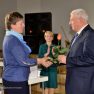 Arvīds Kucins pasniedz Izglītības un zinātnes ministrijas Pateicības rakstu par izcilu darbu Latvijas jauniešu patriotisma audzināšanā un ieguldījumu valsts aizsardzības mācības nometņu organizēšanā Ilūkstes Raiņa vidusskolas direktorei Veltai Šternai un kolektīvam, kā arī Bebrenes vispārizglītojošās un profesionālās vidusskolas direktorei Ērikai Šaršunei un kolektīvam.