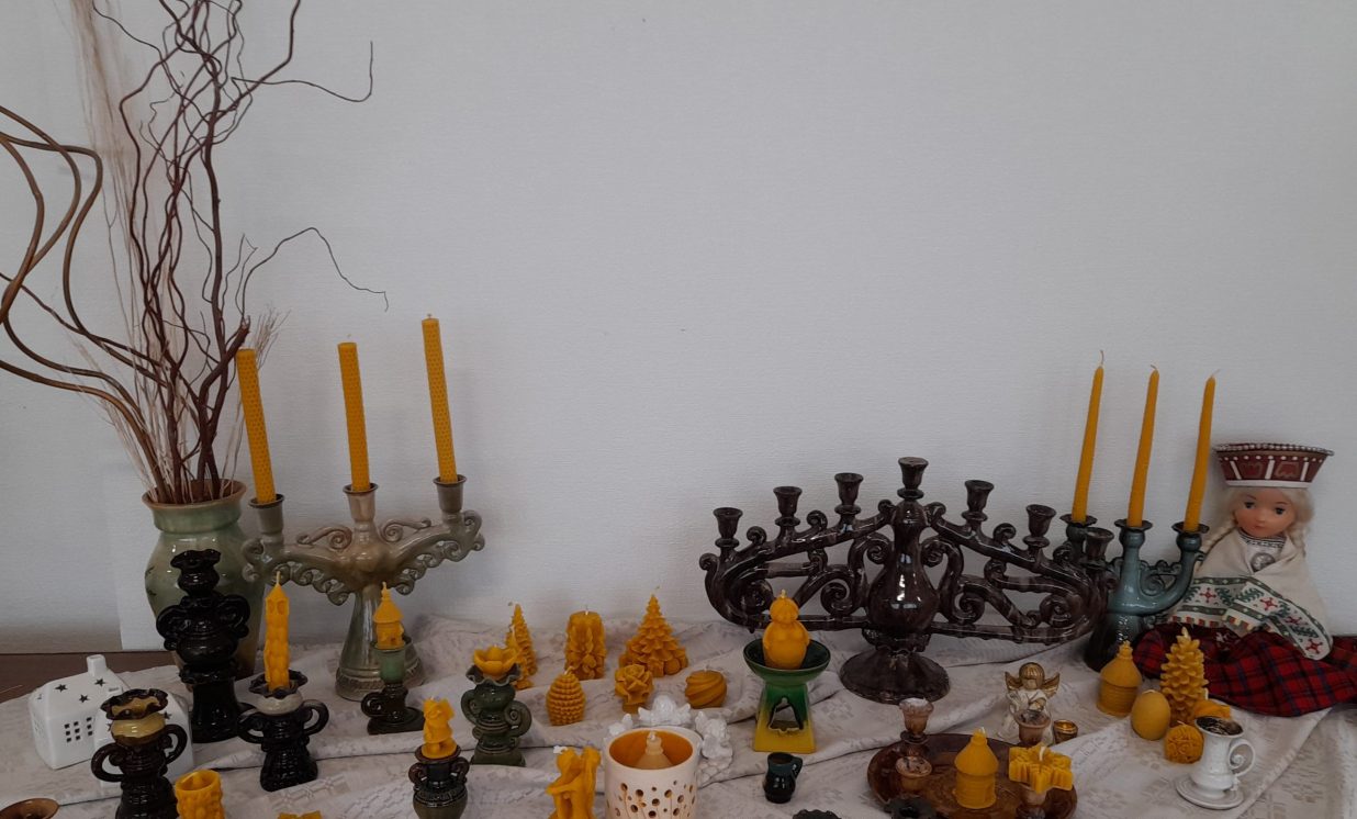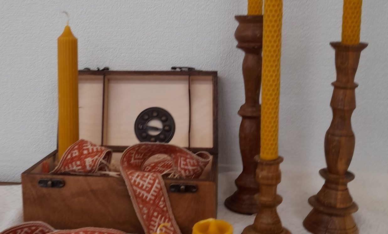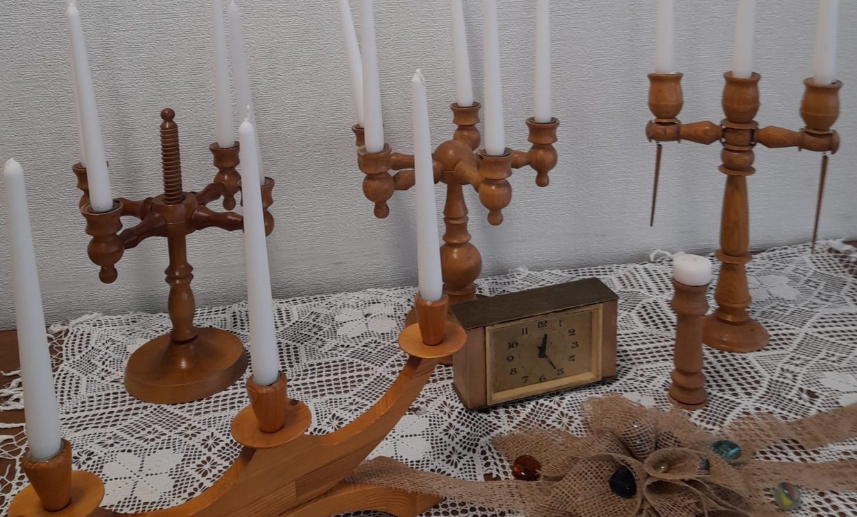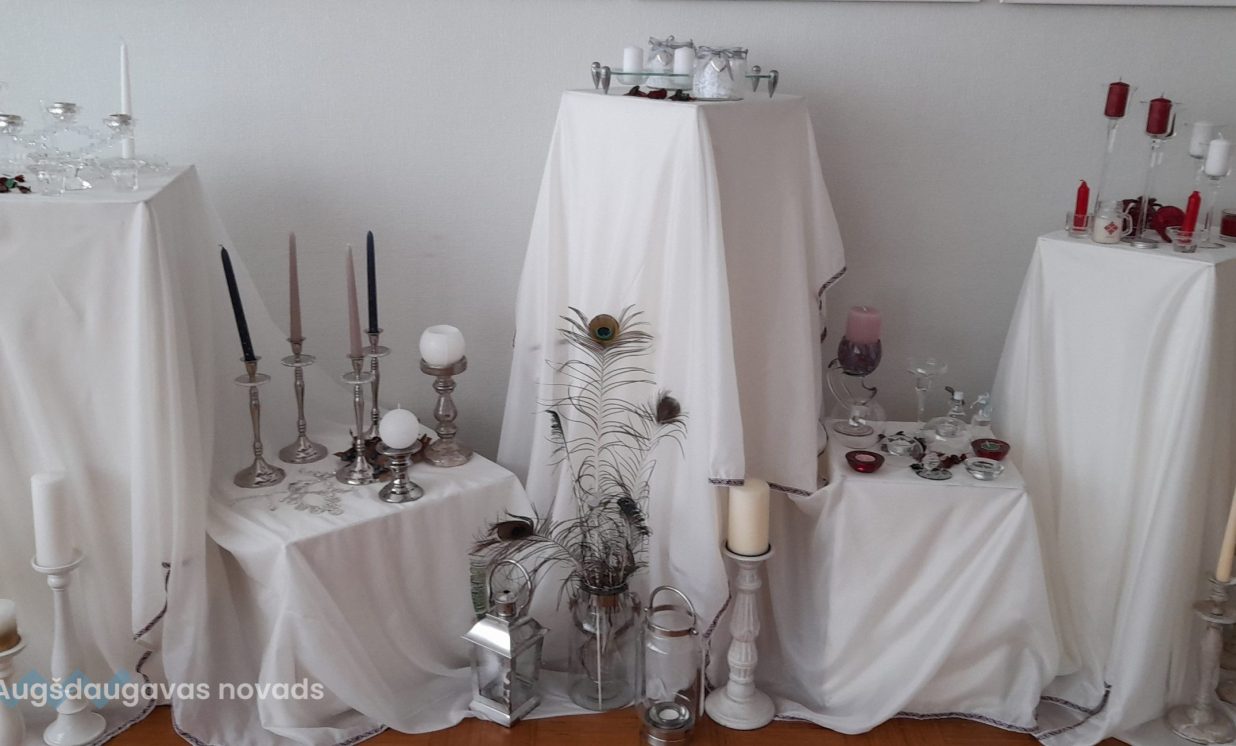 Ināra Ūbele parādīja svečturus, kuri ir kalpojuši kāzu reģistrācijās un bērnu kristību pasākumos. Lepojās ar to, ka kādreiz koka virpotos svečturus varēja pasūtīt Kalupē pie Arkādija Urbāna, bet tagad metāla svečturus var pasūtīt pie kalupieša Oskara Stūriškas.