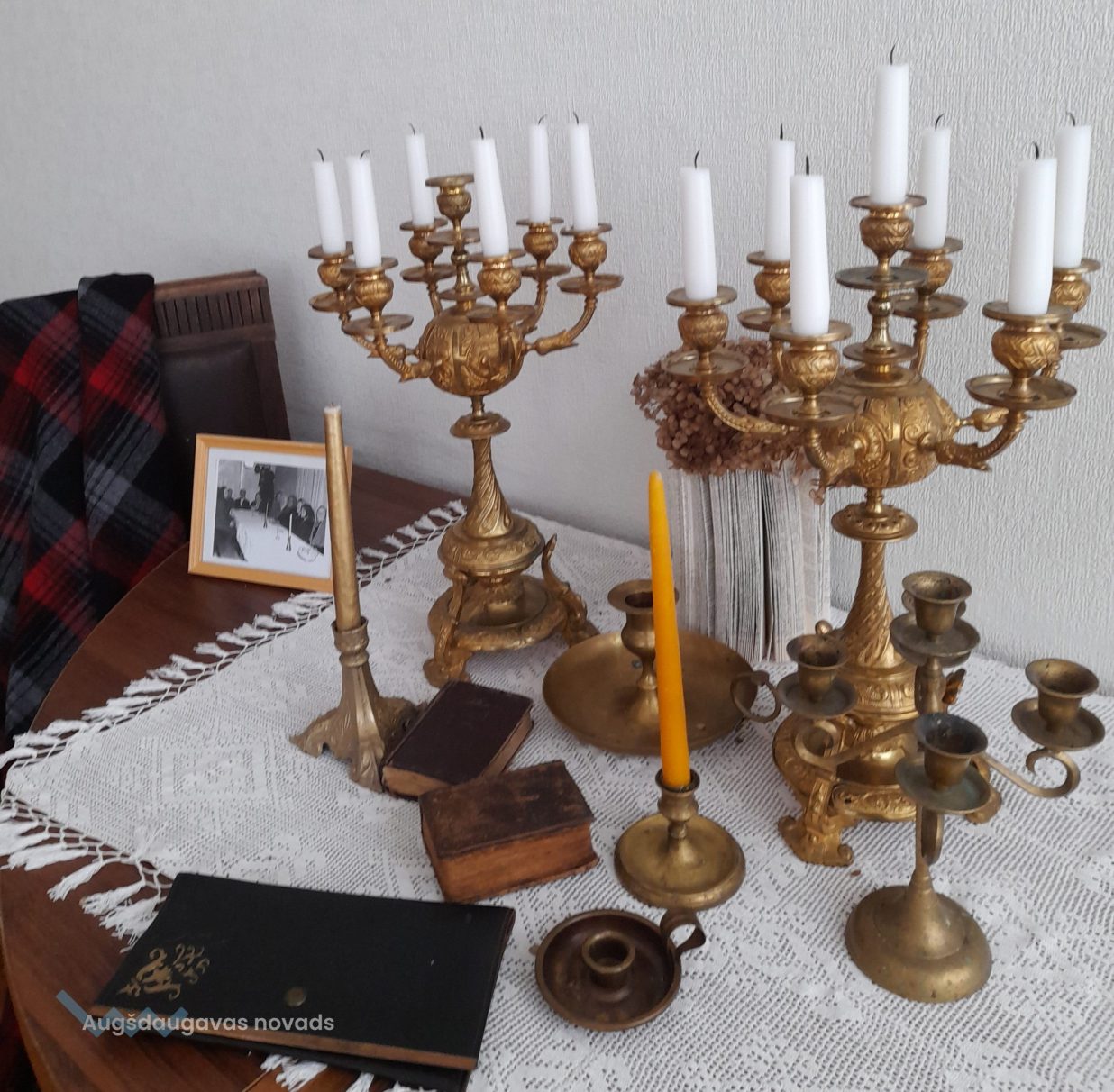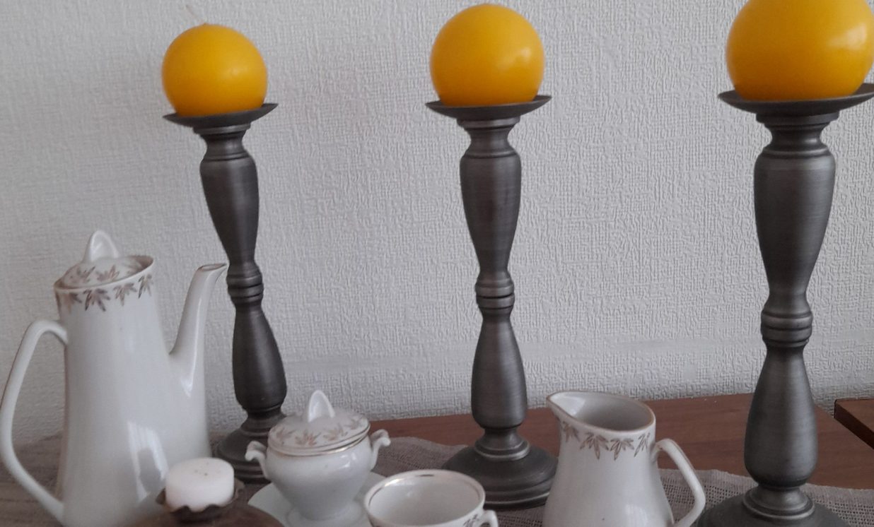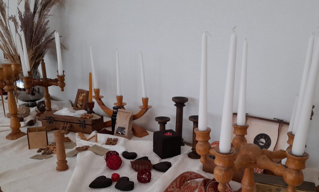 Ināra Ūbele parādīja svečturus, kuri ir kalpojuši kāzu reģistrācijās un bērnu kristību pasākumos. Lepojās ar to, ka kādreiz koka virpotos svečturus varēja pasūtīt Kalupē pie Arkādija Urbāna, bet tagad metāla svečturus var pasūtīt pie kalupieša Oskara Stūriškas.