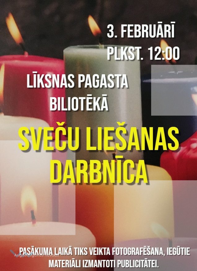 3. februārī plkst. 12.00 Līksnas pagasta bibliotēkā notiks sveču liešanas darbnīca.