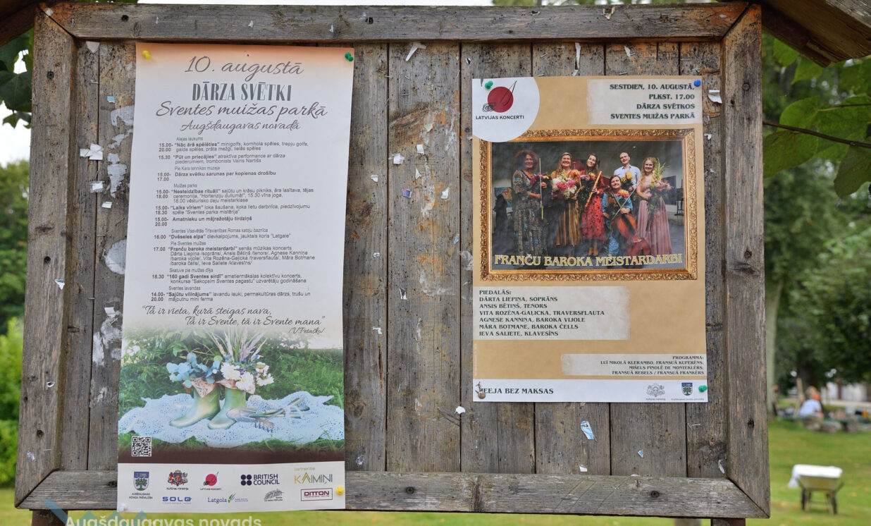 10. augustā Sventes pagastu piepildīja neierasti skati un mūzika: cēli pastaigājās dāmas un kungi seno laiku tērpos, skanēja baroka mūzika, pagātnes elpa mijās ar mūsdienām, uz mirkli apstājās laiks, valdīja harmonija un nesteidzība. Sventes muižas parkā tika svinēti Dārza svētki, suminot pagastu tā 160. gadadienā.