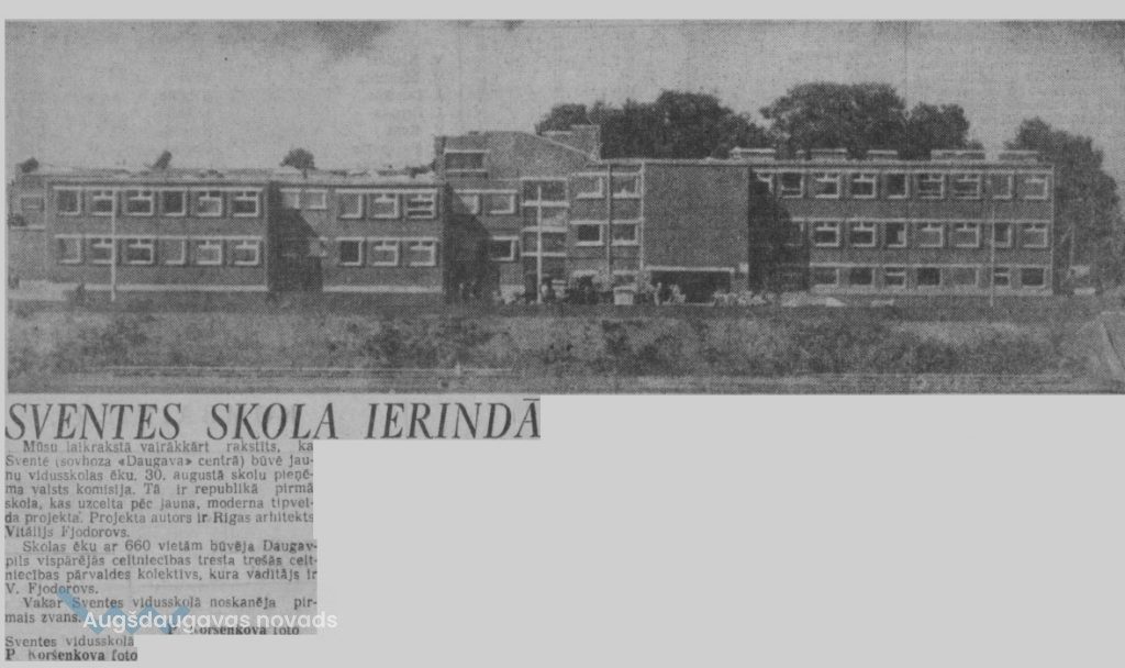 Jauno Sventes skolas ēku uzcēla līdz 1976. mācību gada sākumam. Tolaik tā atradās sovhoza ”Daugava” centrā. Ēka bija republikā pirmā, kas uzcelta pēc jauna, tipveida projekta. Projekta autors ir Rīgas arhitekts Vitālijs Fjodorovs. Skolas ēku ar 660 vietām būvēja Daugavpils vispārējās celtniecības tresta 3. celtniecības pārvaldes kolektīvs. Par to 1976. gada 2. septembrī ziņo ”Avangards” (nr.105).