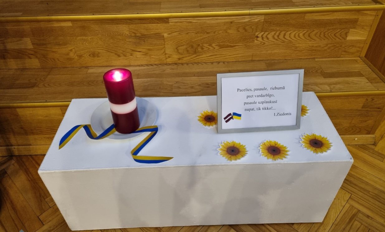 Sventes vidusskolā notika piemiņas pasākums “365 dienas Ukrainā sāpju ciešanu un nāves ēnā..”