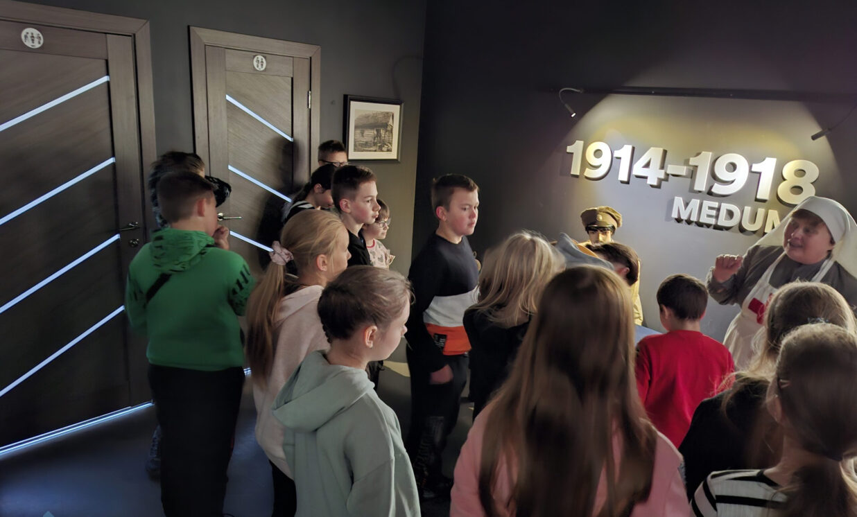 Sventes vidusskolas 5.klases skolēni18.oktobrī devās uz Pirmā pasaules kara muzeju Medumos, lai iepazītos ar muzeju un piedalītos “Topošā karavīra izlaušanās spēlē”. Pirms muzeja apmeklējuma skolēni pastaigājās pa Medumu parku, lai izjustu kopības sajūtu.