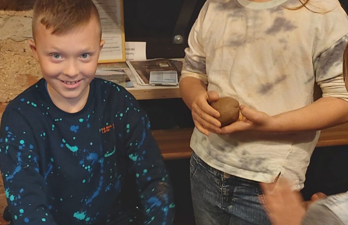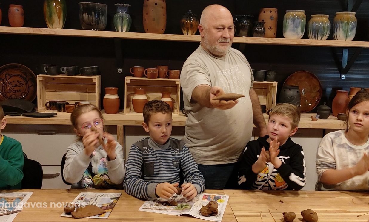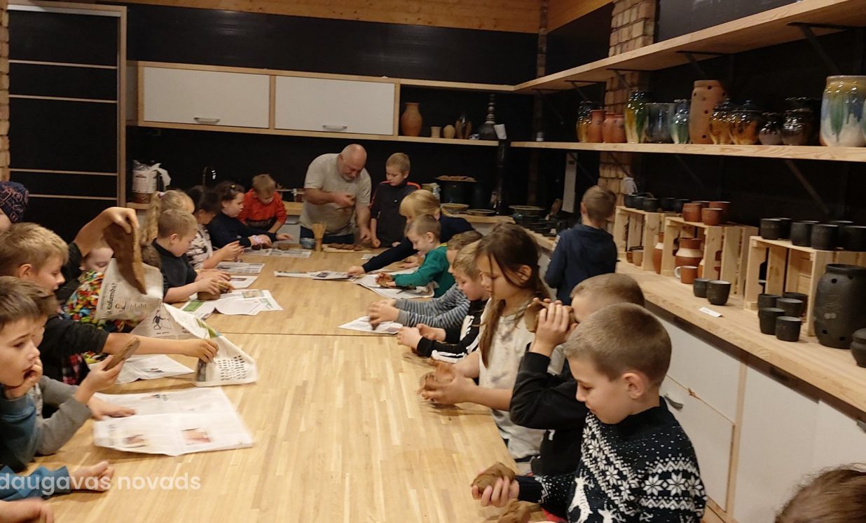 Nākamais apskates objekts bija keramiķu Valda Pauliņa darbnīca, kas arī atrodas turpat Krāslavā. Meistars nodemonstrēja savu meistarību māla vāzes tapšanā, bet pēc tam darbnīcā notika meistarklase svilpaunieku pagatavošanā. Skolēni ar prieku no māla veidoja putna formas svilpīti. Paldies "Latvijas skolas somai" par šo iespēju!