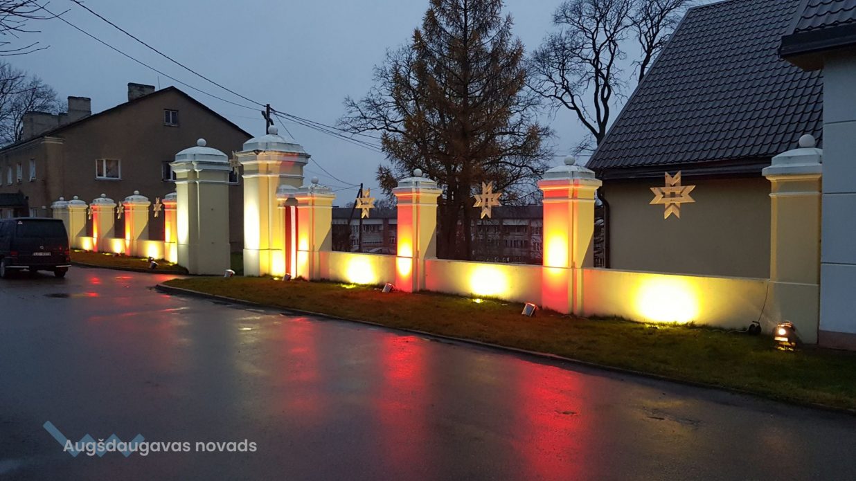 Mūzikas pavadījumā varēja vērot gaismas instalāciju “Muižas vārti vēstures griežos”. Grāfa Plātera-Zīberga 20.gs. sākumā būvētie Sventes muižas vārti šajā svētku reizē iemirdzējās sarkanbaltsarkanās krāsās. Vecāka gadagājuma iedzīvotāji atcerējās, kā bērnībā mēroja ceļu uz Sventes skolu (tagad Sventes muiža), kā jaunībā strādāja sovhozā “Daugava” un regulāri apmeklēja sovhoza kantori, kā grieza valsi arodbiedrības klubā, kas atradās muižas saimniecības ēkā (tagad Tautas nams).