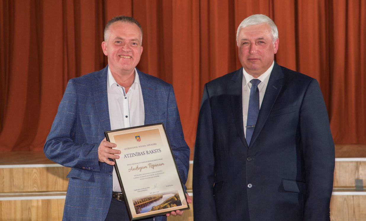 ◀ Špoģu Mūzikas un mākslas skolas direktors Andrejs Repins par prasmīgu skolas pedagoģiskā kolektīva vadīšanu un radošu ieguldījumu Augšdaugavas novada kultūrvides attīstībā.