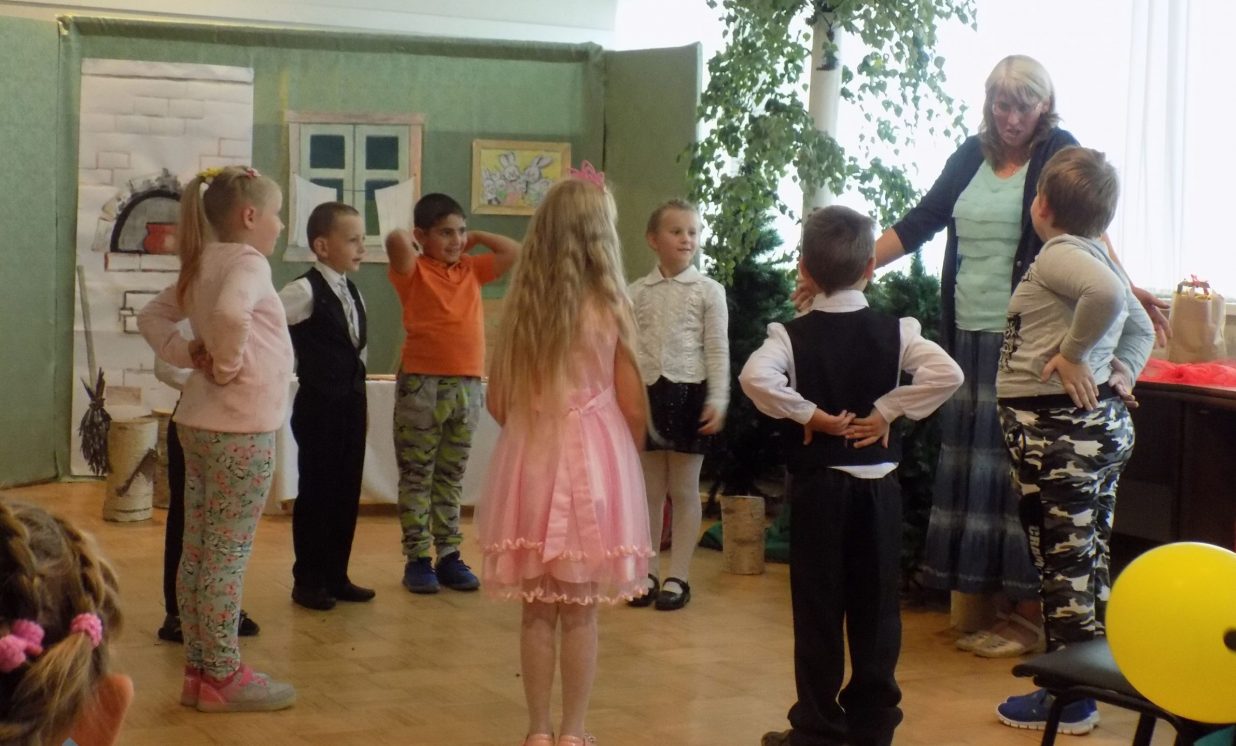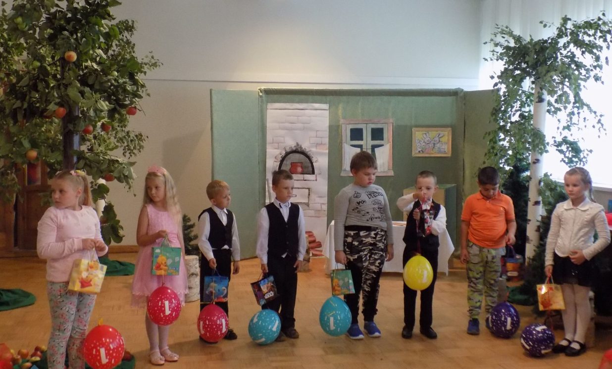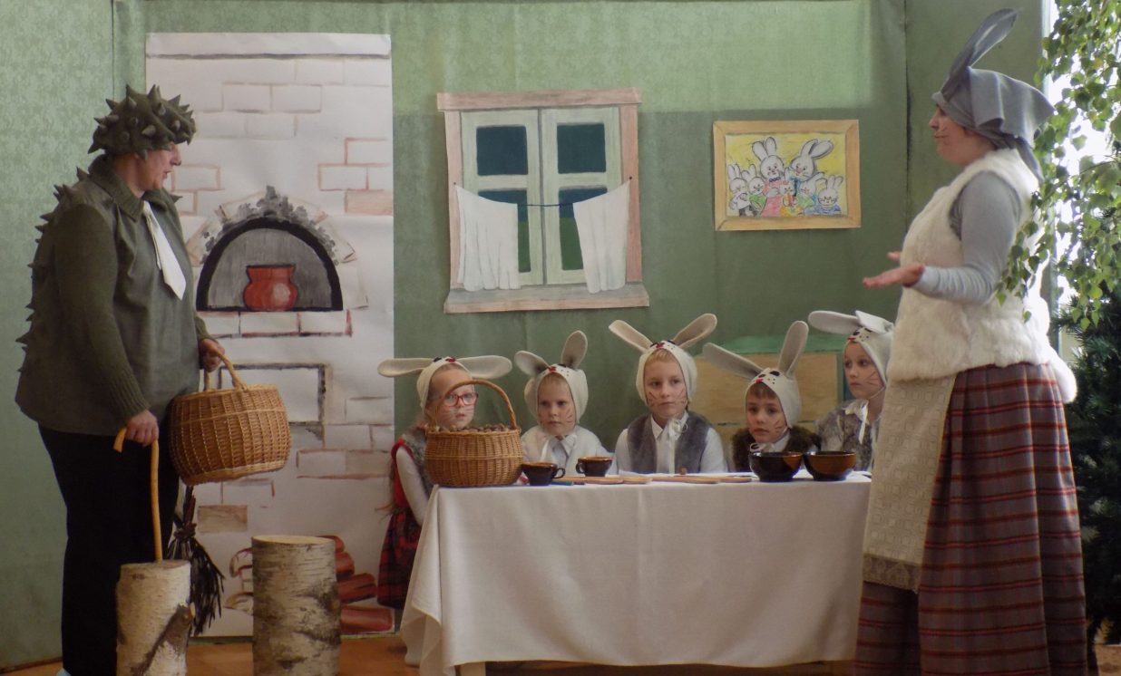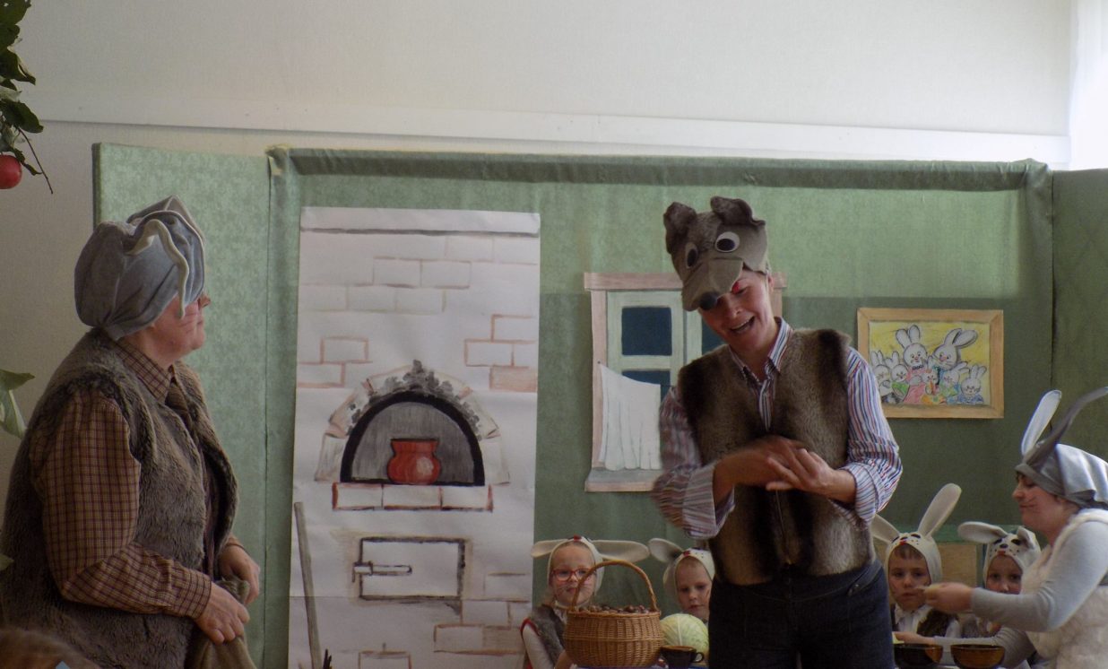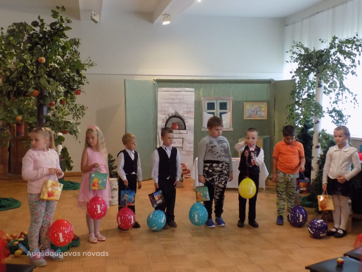 Ar iespaidīgām dekorācijām, interesantām maskām un ikdienai vajadzīgām pamācībām bērnus iepriecināja Preiļu bērnudārza ,,Pasaciņa” skolotājas ar izrādi ,,Ābolu maiss”.