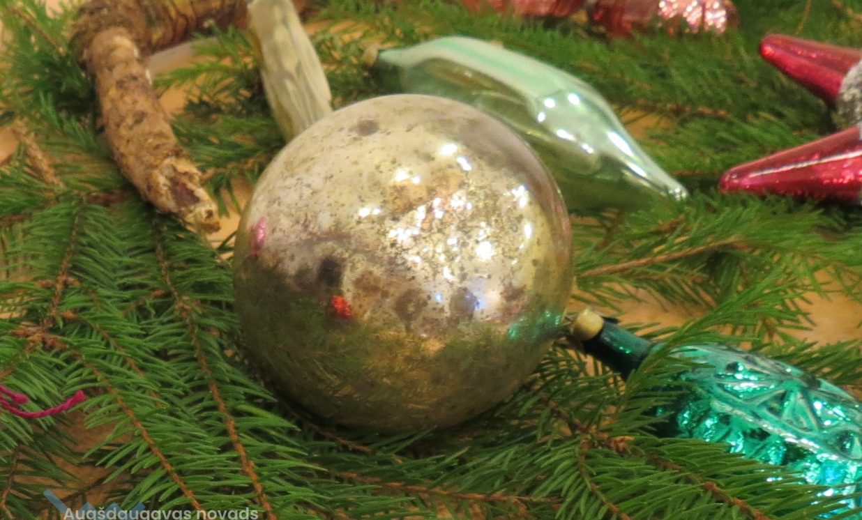 Naujenes pagasta Slutišku ciemā eglītes rotāšanai izmantotais rotājums - apaļa bumba no bieza stikla
