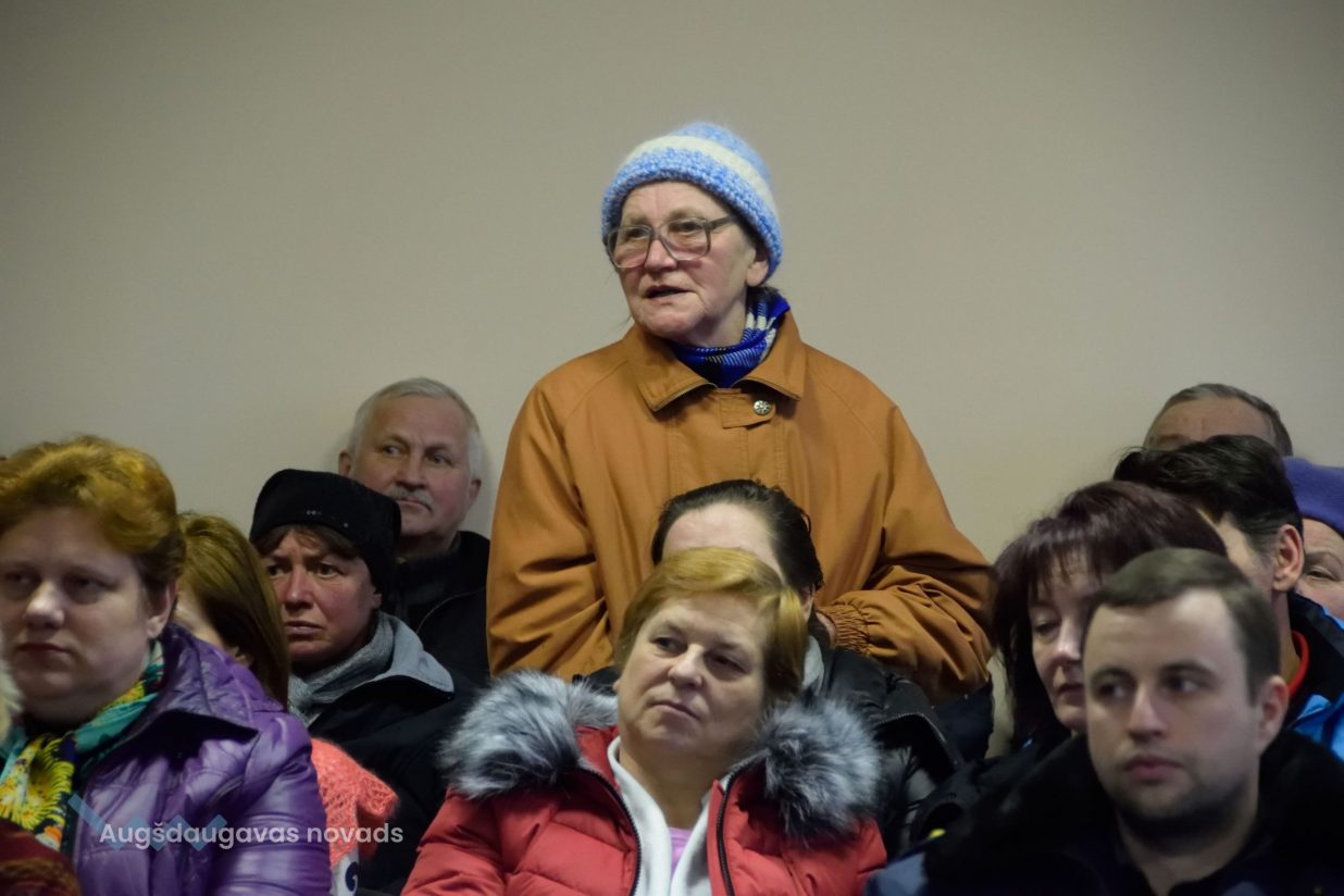 Zālē izskanēja jautājums, vai līdzīgi nevarētu palīdzēt atremontēt arī privātmājas, kuras iedzīvotāji par savu naudu atremontēt nevar. Vija Pļaskota atbildēja, ka pēc likuma pagasta pārvalde nevar piešķirt pašvaldības dzīvokli personai vai ģimenei, kas nav piemērots dzīvošanai. “Mēs nevaram, piemēram, piešķirt nepiemērotu dzīvokli daudzbērnu ģimenei, jo saprotam, kādos apstākļos viņiem būtu jādzīvo. Mēs rīkojamies likuma ietvaros. Tieši tāpat daudzdzīvokļu mājā, kurā ir 8 dzīvokļi, iedzīvotājiem tiek piešķirtas sociālās garantijas, viņi tiek nodrošināti ar malku. Šos dzīvokļus viņi apkurina paši. Un, ja gadās, ka mājā iemetas pelējums vai rodas kāda šķirba, cieš visi mājas iedzīvotāji. Skatoties katru situāciju konkrēti, es iestājos par šiem dzīvokļiem. Mēs iestājamies par visu māju kopā, domājot par visiem tās iedzīvotājiem un izlemjam, piemēram, atremontēt jumtu. Tās ir mūsu funkcijas likuma ietvaros, un šādus remontus veicam ar domu, lai būtu labi visiem, nevis tikai kādam konkrētam iedzīvotājam”, tā V. Pļaskota.
