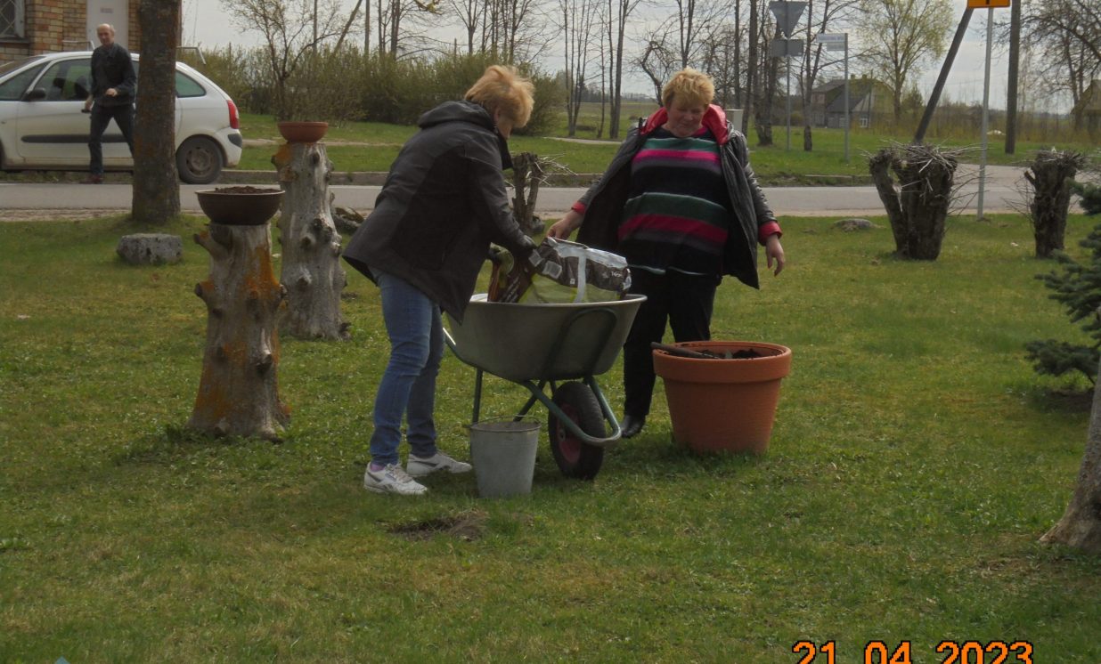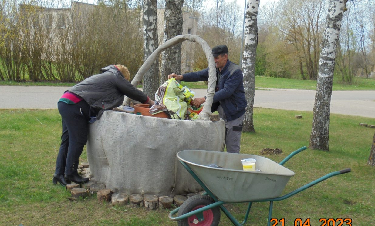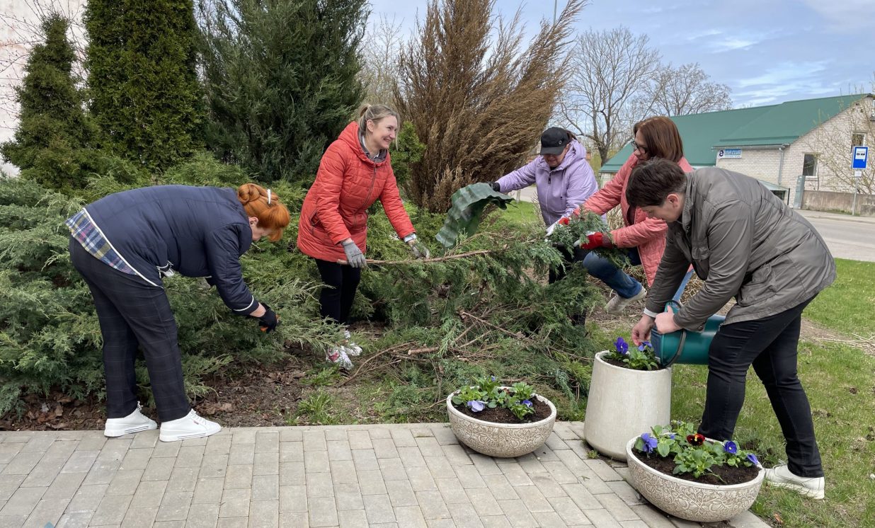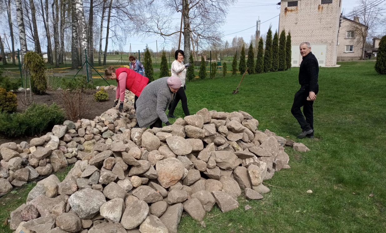 Lielajā talkā Maļinovā noritēja teritorijas uzkopšanas darbi, kuras ietvaros iestādīja pavasara puķes, atjaunoja košumkrūmu stādījumu apmales, lai būtu prieks sev un visiem Maļinovas ciemiņiem.