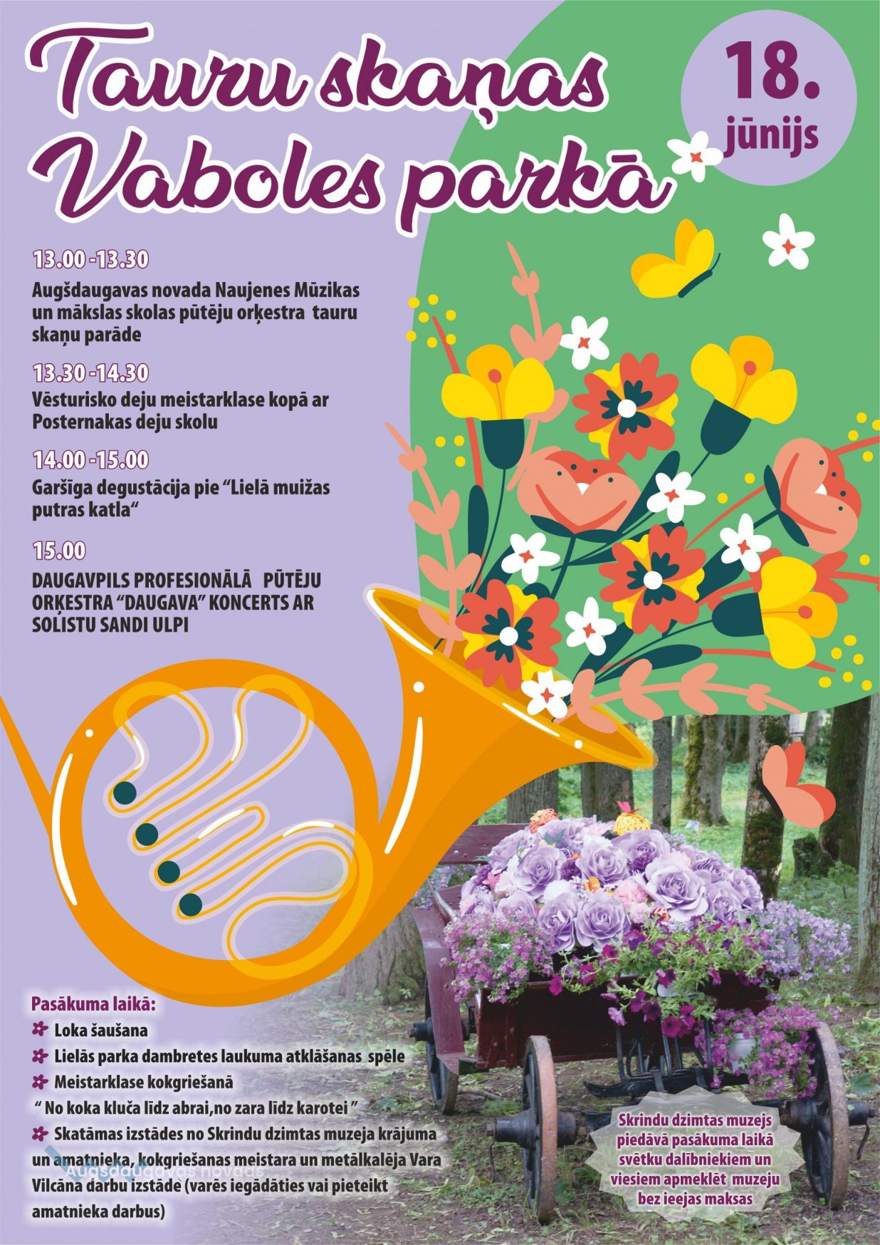 18. jūnijā aicinām uz pasākumu “Tauru skaņas Vaboles parkā”.