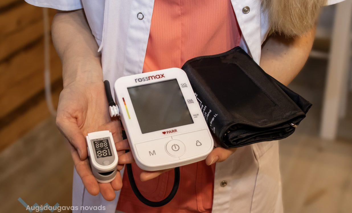 Vēl palīgi darbā, ko uzņēmēja ir iegādājusies par projekta finansējumu, ir asinsspiediena mērītājs un pulsa oksimetrs, kas ļauj noteikt pirmos indikatorus, ja cilvēka organismam ir kādas problēmas. Iegādātās ierīces ir ērti lietojamas un mobilas: “Ja agrāk tās ierīces bija tādas lielas, sarežģītas, neērtas, tad šeit viss ir ļoti vienkārši un ātri, nav nepieciešams laiks, lai visu ilgi analizētu”, teic Elīna.