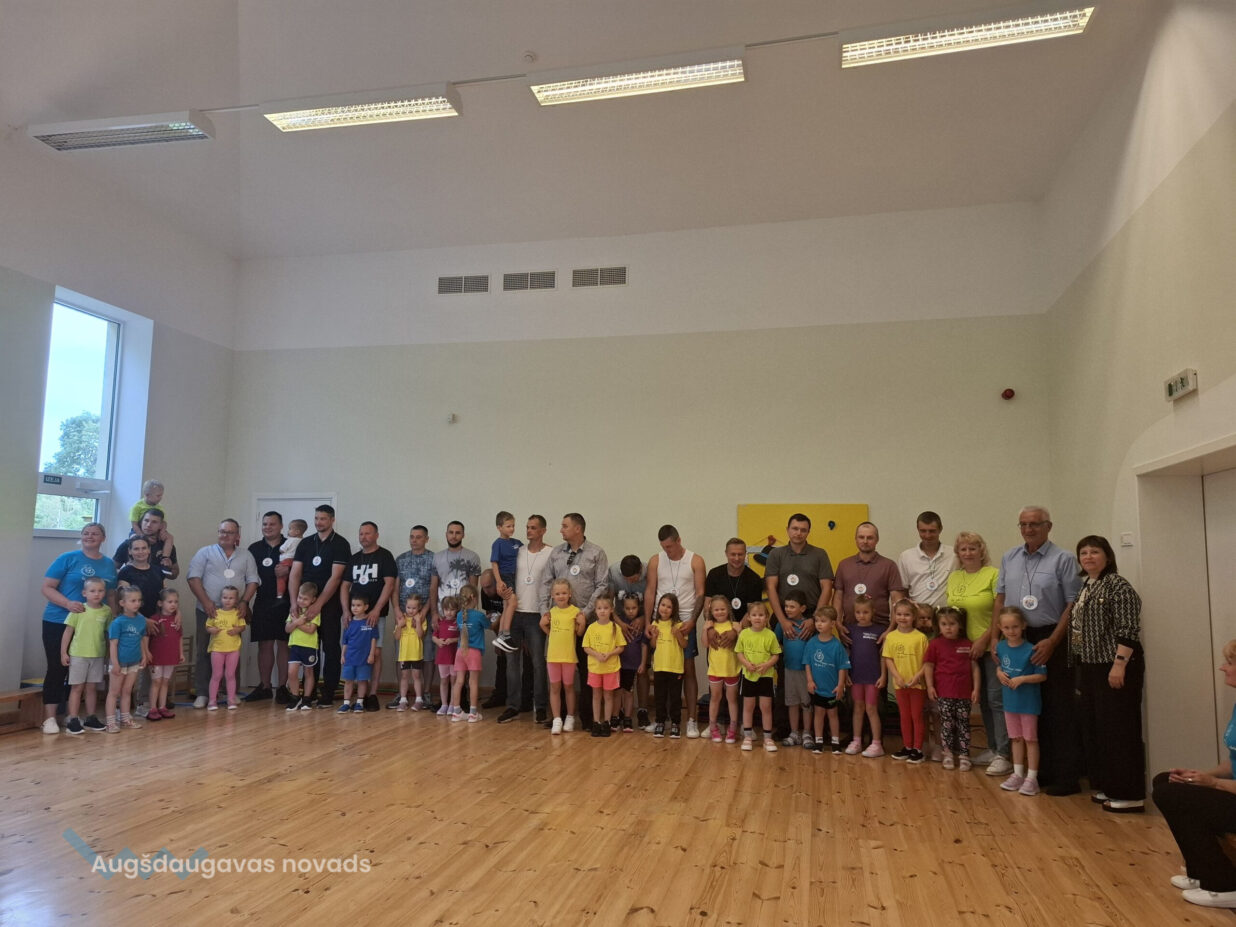 Sporta zālē kuplā skaitā pulcējās tēvi, vectēvi, krusttēvi un pārējie ģimenes locekļi, lai Tēvu dienā apvienotu ģimeņu sportisko un radošo garu. Stiprā ģimenē aug stipri pieaugušie. Stipra ģimene ir valsts balsts.