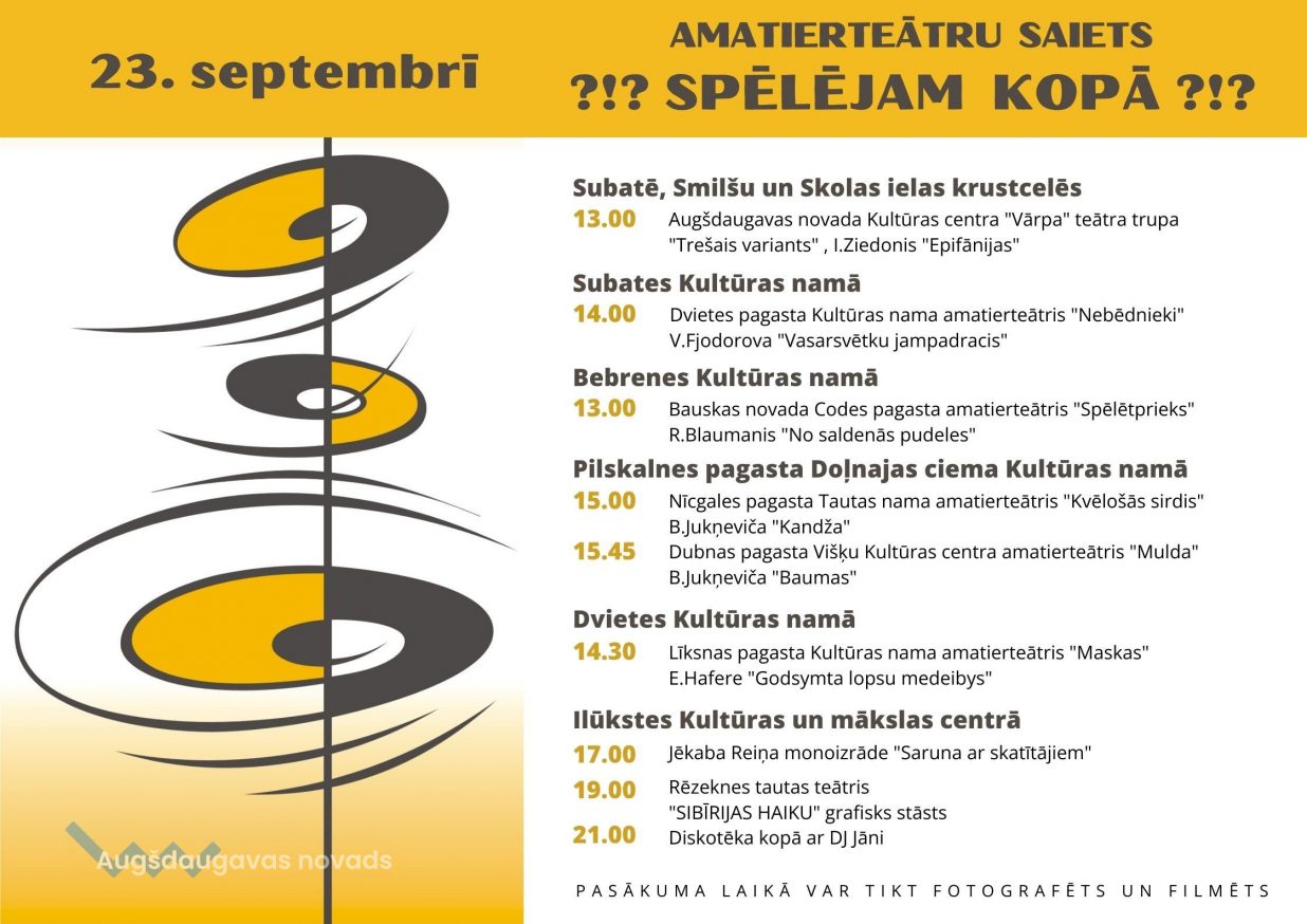 23. septembrī Augšdaugavas novada Daugavas kreisajā krastā saspēlēsimies amatierteātru saietā “Spēlējam kopā”.