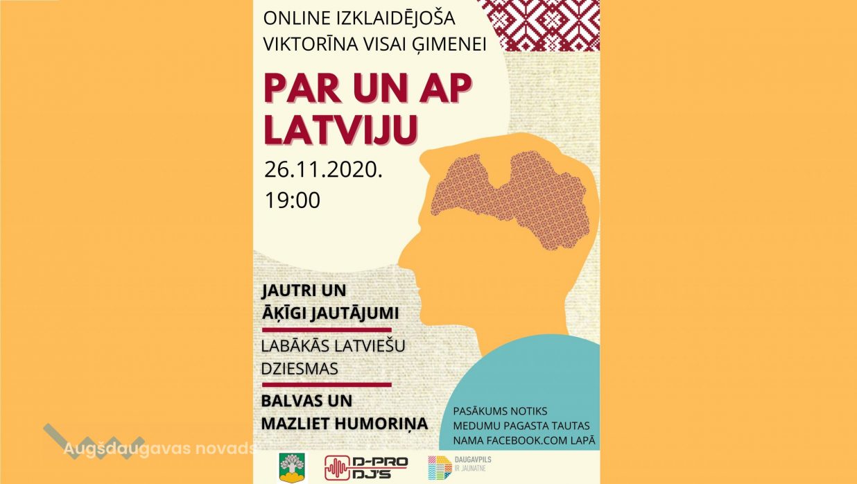 Aicinām š.g. 26. novembrī plkst. 19:00 pieslēgties tiešsaistes viktorīnai visai ģimenei “Par un ap Latviju”.