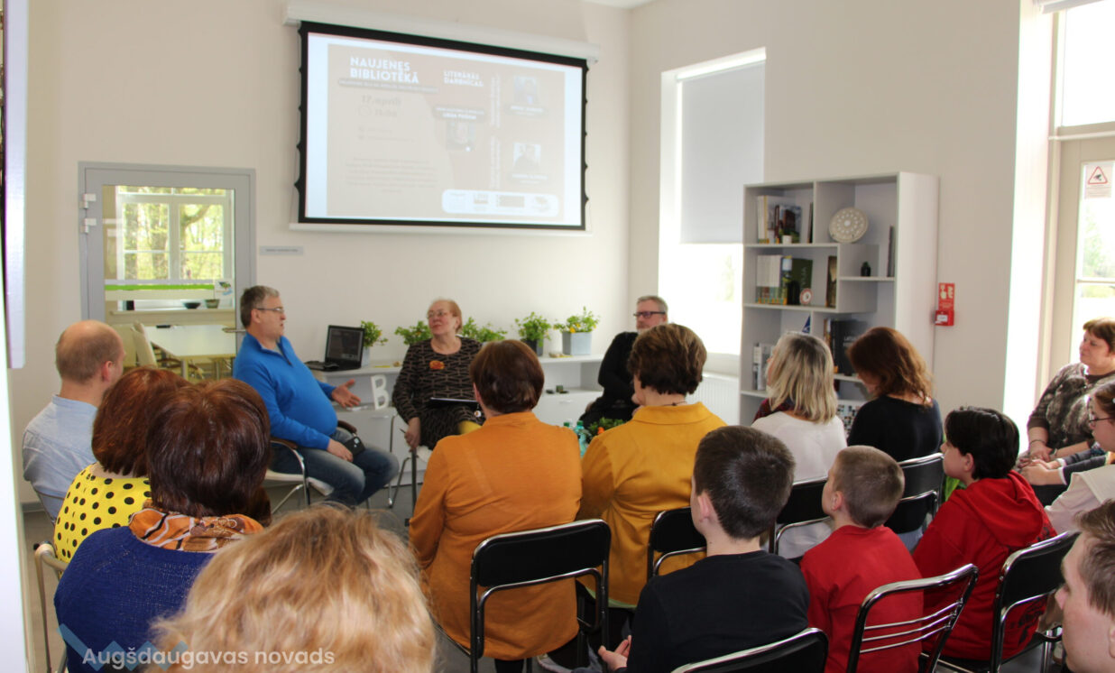 17. aprīlī Naujenes bibliotēkā norisinājās Valsts Kultūrkapitāla fonda atbalstīts, Latvijas Nacionālās bibliotēkas un Latvijas bibliotēku biedrības realizētā projekta «Grāmata rosina sarunu par aktuālo» pasākums, kura ietvaros notika divas literārās darbnīcas: literārā darbnīca “Iepazīsim Baltijas valstu rakstniecību” ar mūsdienu latviešu prozas autoru un literatūrzinātnieku Arno Jundzi, un otra literārā darbnīca “Izprast personību stāstu fenomenu” ar latviešu publicistu, rakstnieku, tulkotāju Ilmāru Šlāpinu.