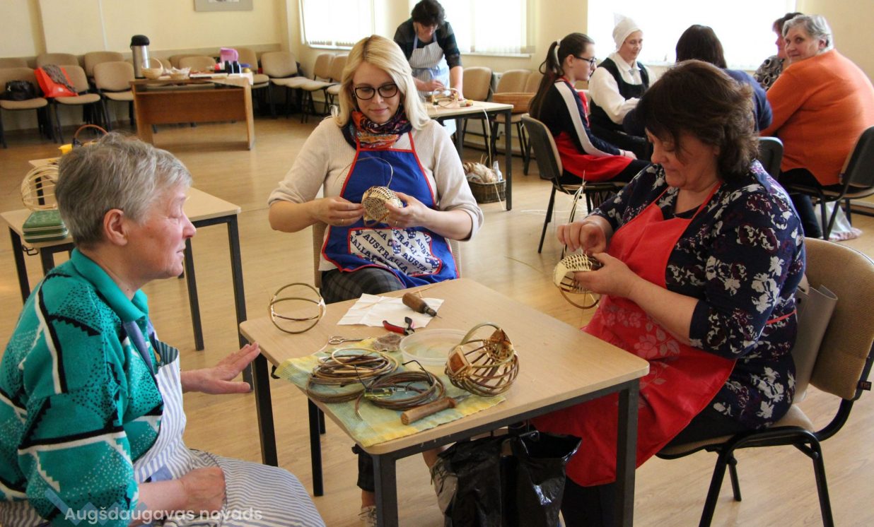 Tika pīti nelieli ‘’riekšaviņgroziņi’’ uz iepriekš sagatavotiem karkasiem, lai nepieredzējis interesents varētu paspēt iemācīties un nopīt savu groziņu, ko paņemt līdzi mājup. Laiks kopīgā radošā darba procesā paskrēja vēja spārniem. Taujājot klātesošajiem par šāda pasākuma nepieciešamību un lietderību, tika saņemta atbilde: ‘’Viennozīmīgi!’’ Acīs mirdzēja prieks un sejas rotāja smaidi. Daža laba krunka iegūla pierēs vien mēģinot savaldīt spītīgo kārkla klūgas sloksnīti, bet, kad viss izdevās, prieks bija desmitkārtīgs.