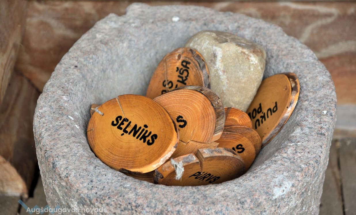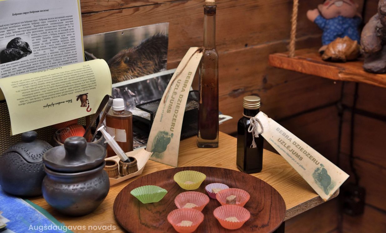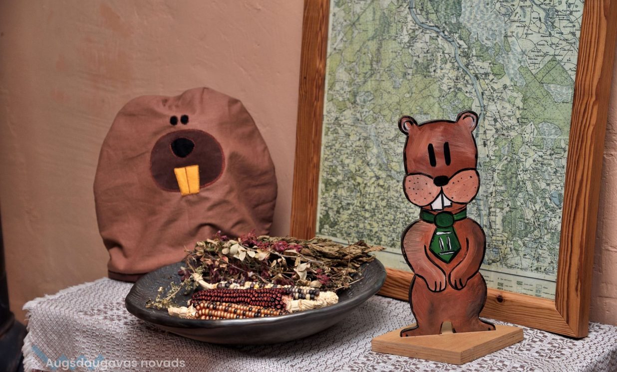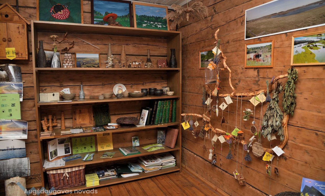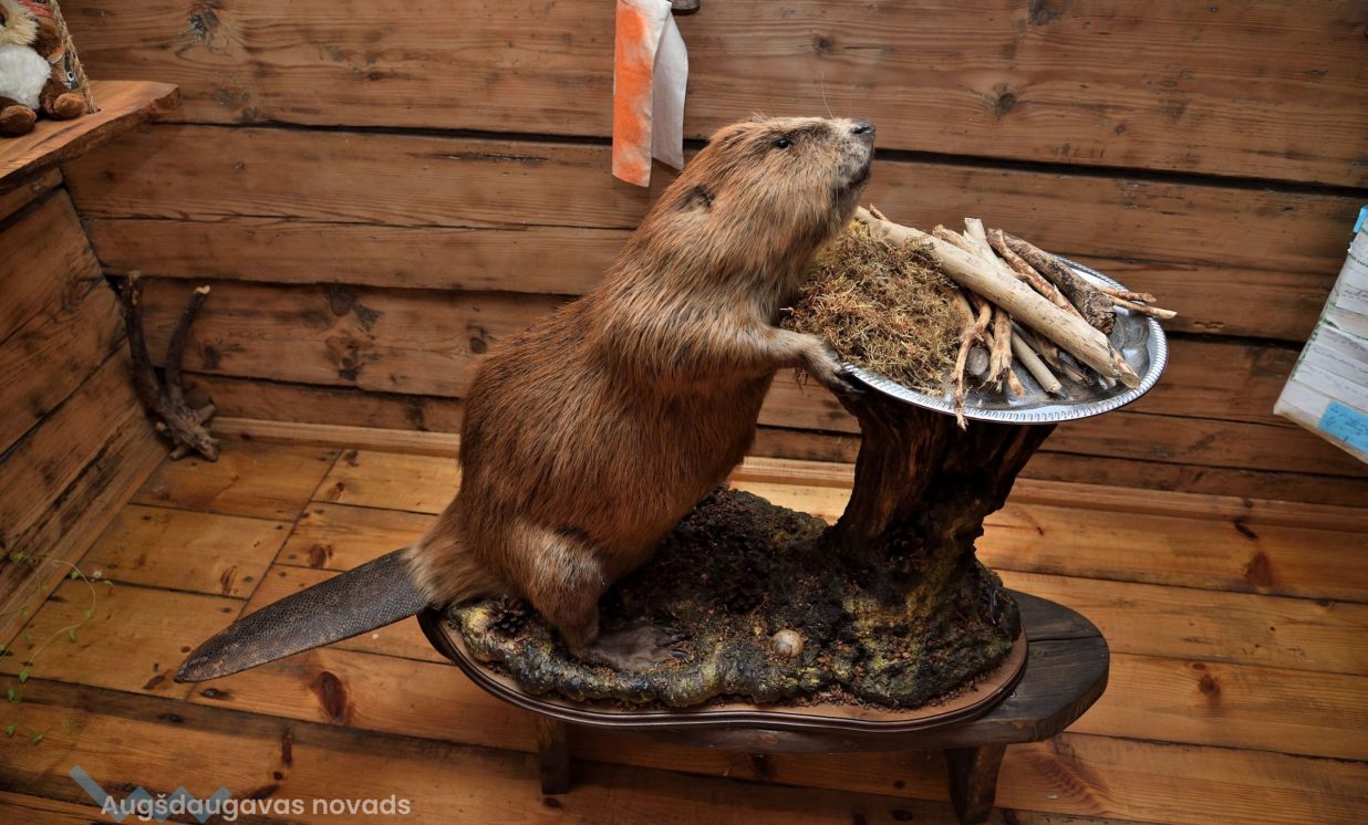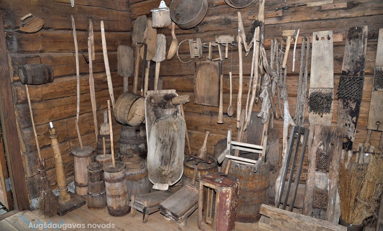 Blakus informācijas centram “Gulbji” ir izveidota ekspozīcija par koka priekšmetiem.