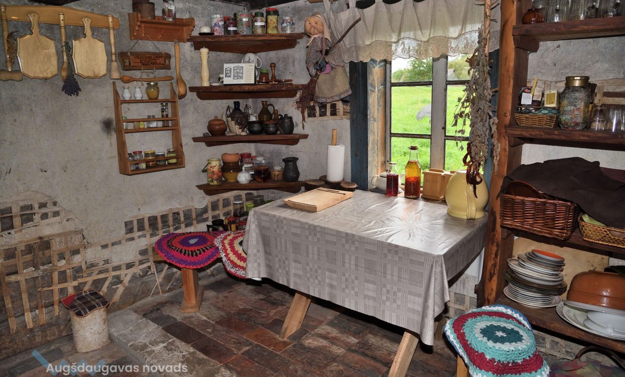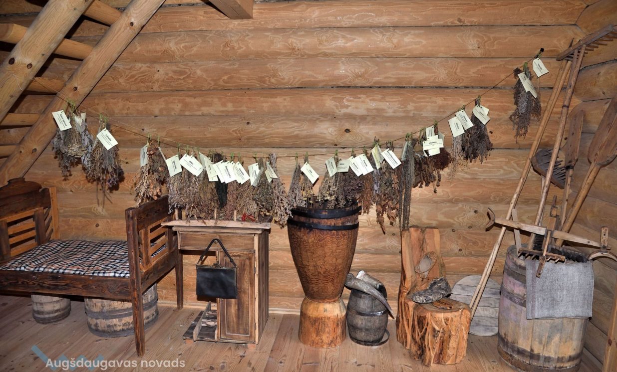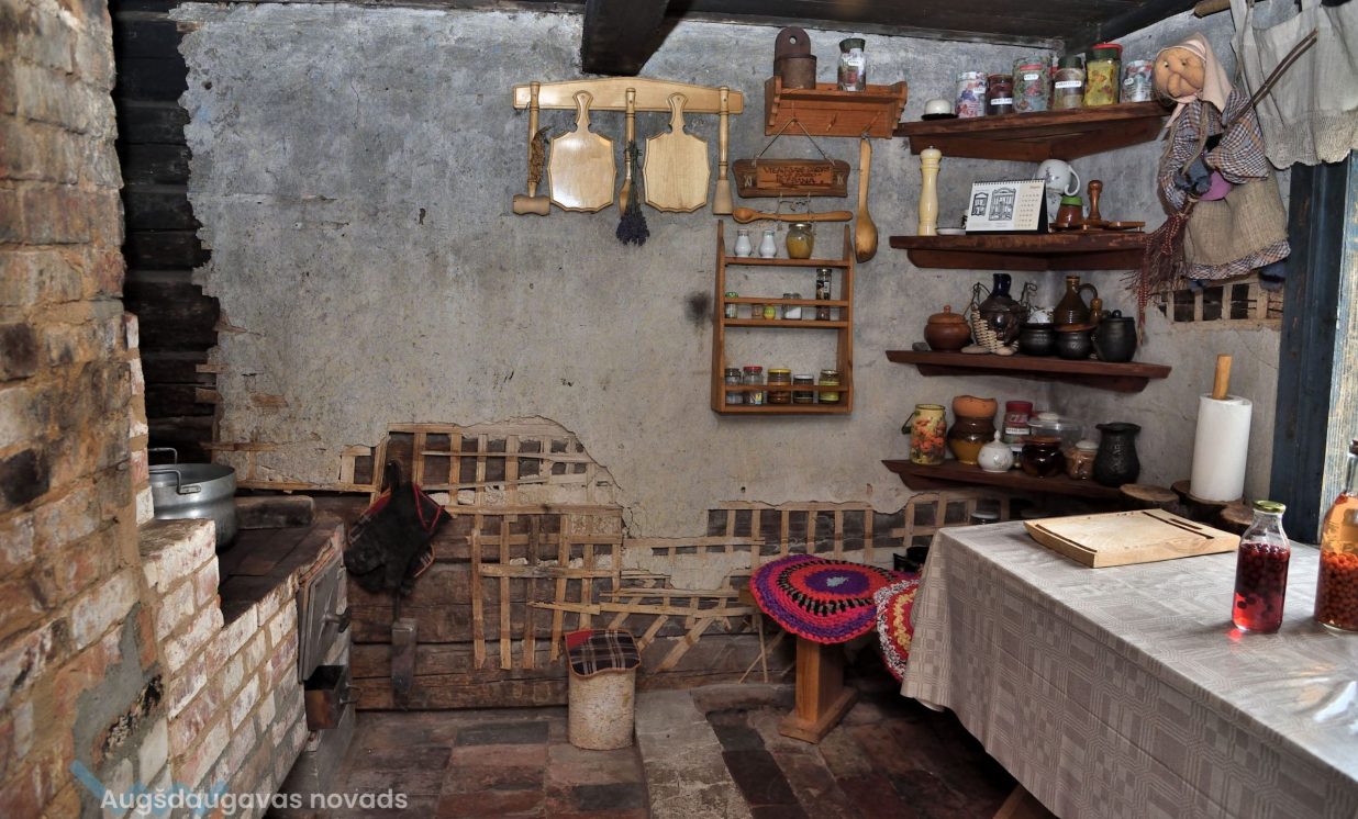 Rijā redzamie senie sadzīves priekšmeti paglābti no iznīcības sagruvušās, cilvēku pamestās mājās Dvietes palienes teritorijā. Gadsimtu liecinieki ir savākti, nomazgāti, novietoti zem senās rijas niedru jumta.