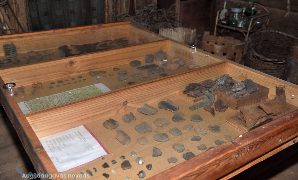 Īpaša vieta ekspozīcijas centrā iekārtota arheoloģiskajiem atradumiem, kuri savākti vienkārši pastaigājoties Dvietes palienē vai strādājot piemājas dārzā. Šajā vietā var izjust gadsimtu strāvojumu, jo ļaudis te dzīvojuši jau 11 gadu tūkstošus. Te apskatāmi arheoloģiskie atradumi, kas pārstāv gan akmens laikmetu, gan dzelzs laikmetu un viduslaikus. Vienkopus savāktas seno trauku lauskas, krama un akmens rīki, senas monētas, rotaslietu fragmenti, bedrīšakmeņi.